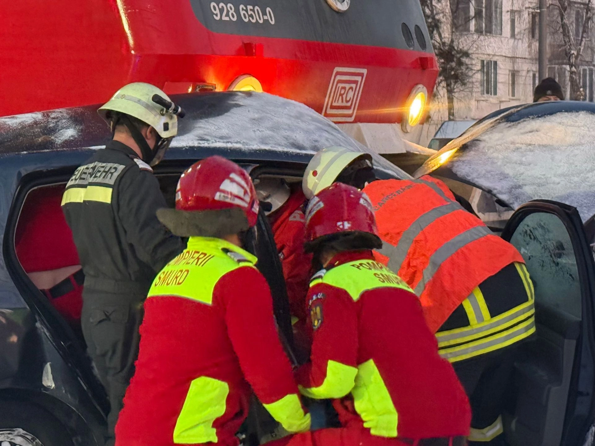 Un accident feroviar a avut loc astăzi în municipiul Bistrița, unde o mașină a fost lovită de tren. Șoferul a fost grav rănit, fiind resuscitat de echipajele ISU.