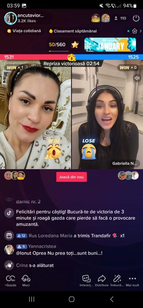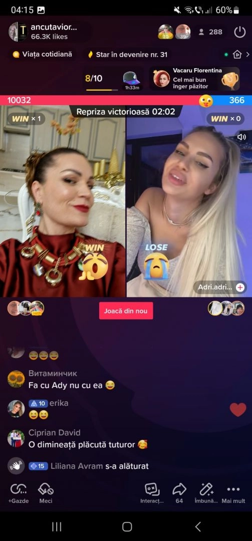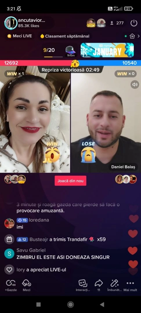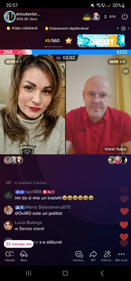"În cinci zile, am ajuns, de la Top Star în devenire, la locul 11 în topul celor mai urmăriți, adică la peste 250.000 de diamante. Acum, sunt în clasamentul național, între cei mai urmăriți. Am intrat pe live-uri cu titanii Tik-Tok-ului, cu Daniel Balaș, cu Ionescu, cu Micula, dar și cu Anamaria Prodan", spune Anca Cârcu, care este prezentă pe rețeaua de socializare aproape în fiecare seară.