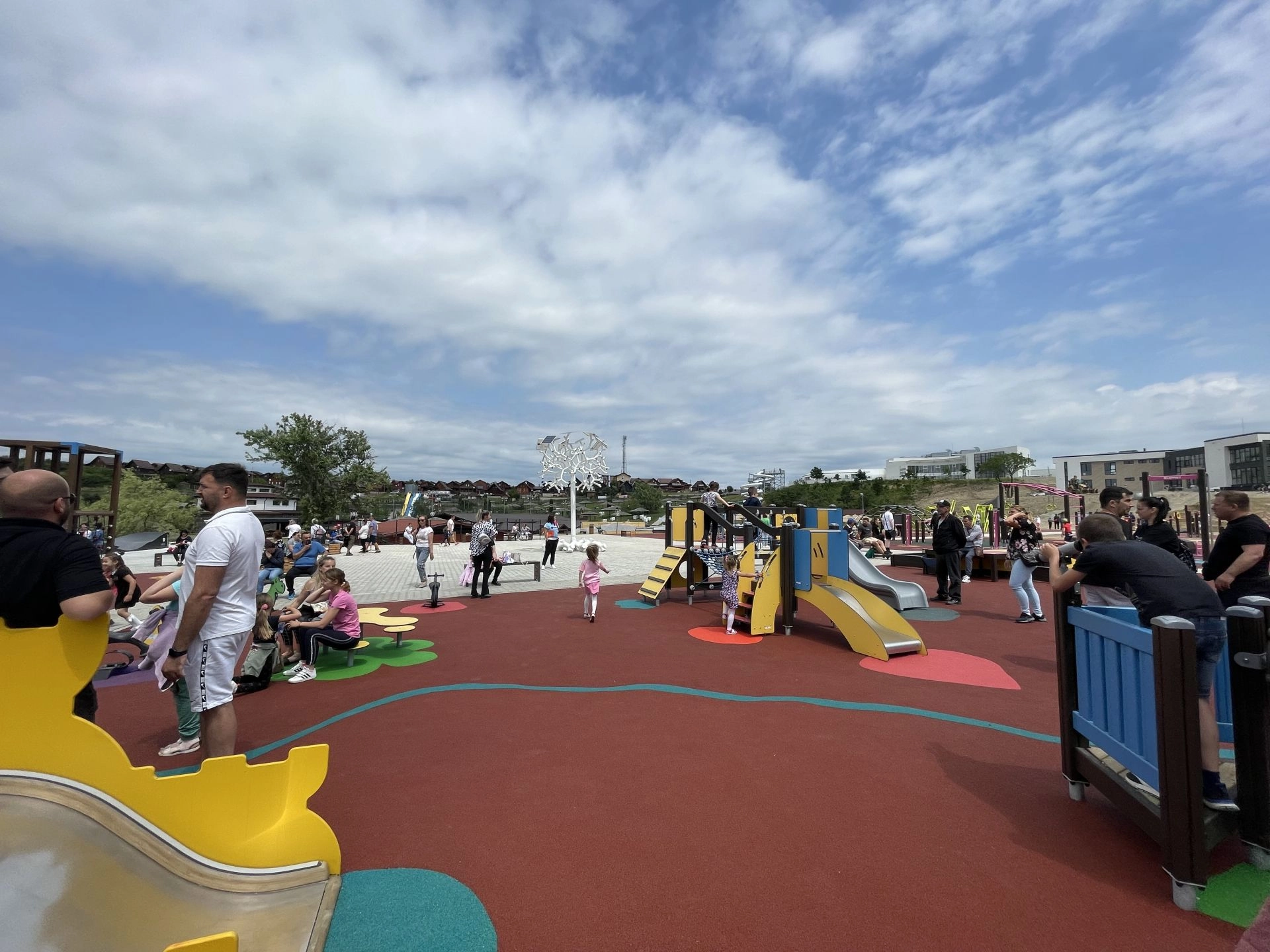 Ziua de 2 iunie a avut o dublă însemnătate pentru copiii din orașul Beclean. Dacă dimineața, pe scena amenajată în fața Primăriei orașului aflat pe malurile Someșului Mare a cântat Gașca ZURLI, la ora amiezii, sute de copii au luat cu asalt noul parc de joacă amenajat la câțiva pași de Centrul Legacy și de viitorul Centrul Social de Zi.