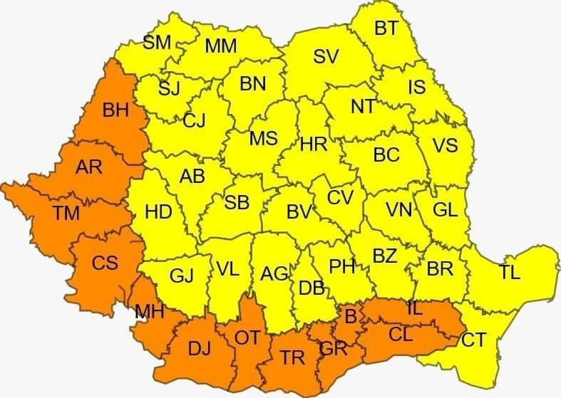 Administratia Nationala de Meteorologie RA a emis avertizări Cod Galben și Cod Portocaliu de caniculă în toată țara.