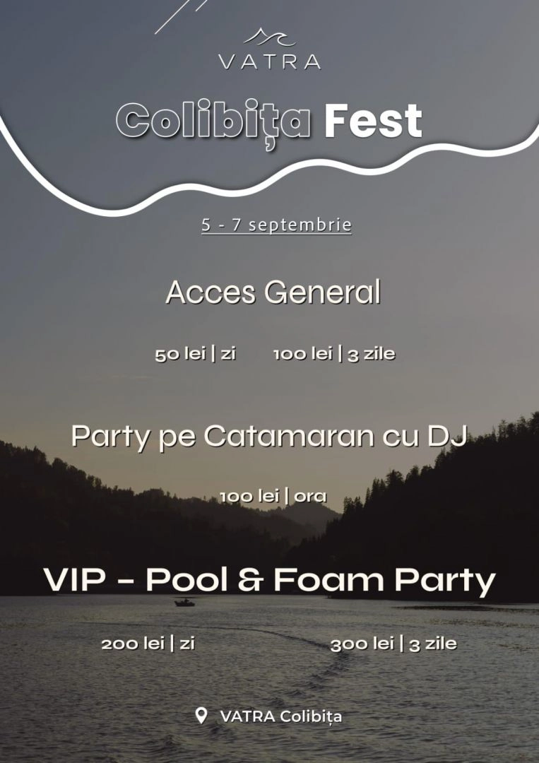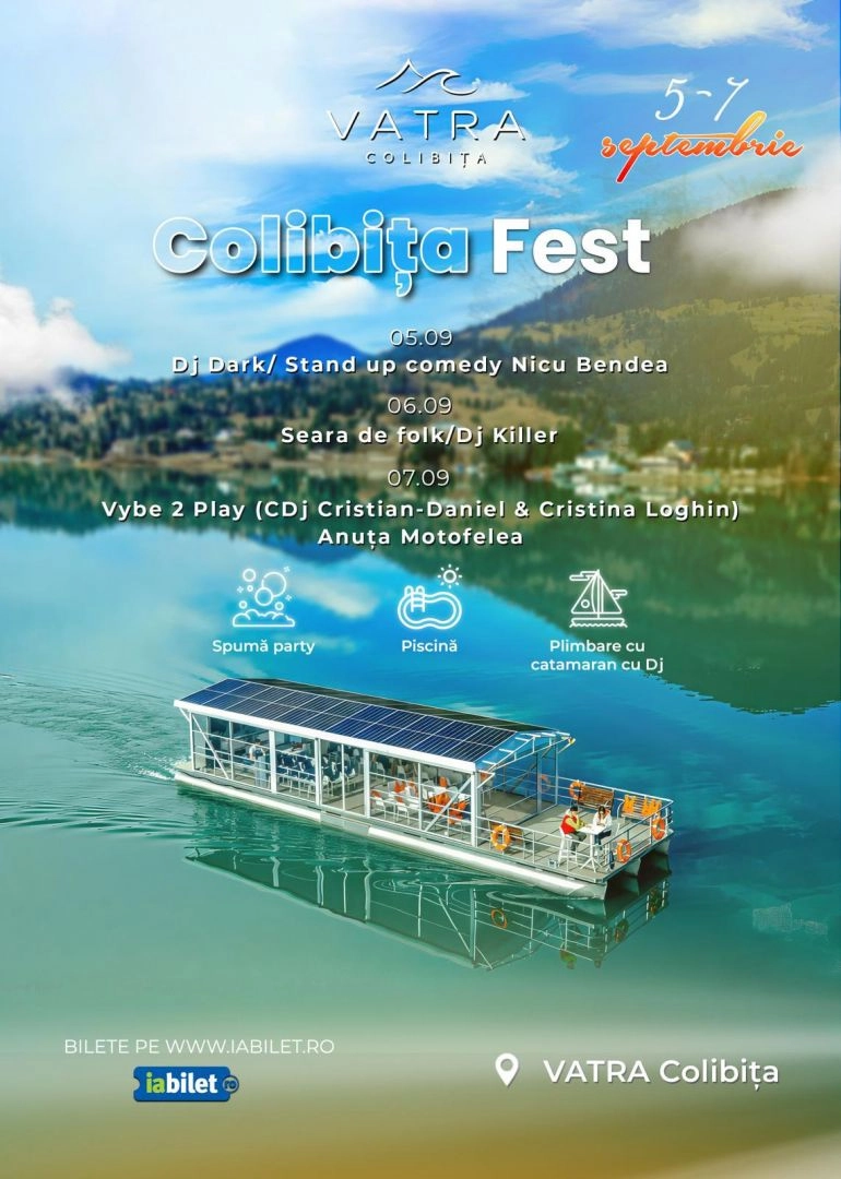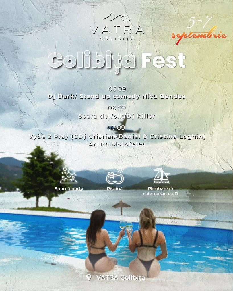 𝟯 𝘀𝗲𝗿𝗶 𝗱𝗲 𝘀𝗽𝗲𝗰𝘁𝗮𝗰𝗼𝗹, 𝗲𝗺𝗼𝘁̦𝗶𝗲 ș𝗶 𝗱𝗶𝘀𝘁𝗿𝗮𝗰𝘁̦𝗶𝗲 într-un cadru de poveste, pe malul lacului Colibița! Cu stand-up comedy, concerte și alte momente deosebite. Vă prezentăm programul evenimentelor: