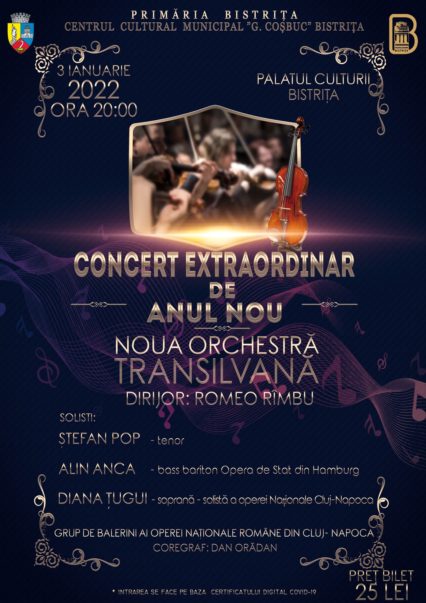 Concertul Extraordinar de Anul Nou va fi susținut de Noua Orchestră Transilvană, sub bagheta dirijorului Romeo Rîmbu. Vor interpreta soliștii Ștefan Pop – tenor Alin Anca – bass bariton la Opera de Stat din Hamburg Diana Țugui – soprană – solită a Operei Naționale din Cluj-Napoca Din spectacol va face parte și un grup de […]