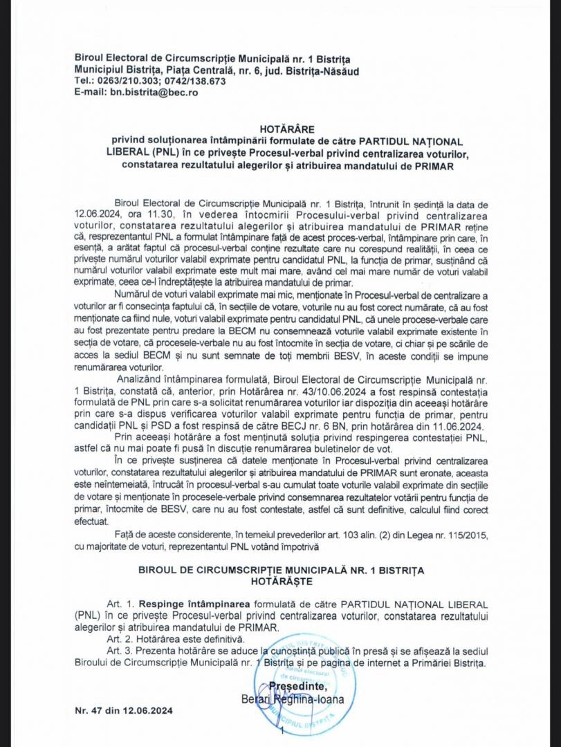 Contestația PNL a fost respinsă. Gabriel Lazany e oficial primarul Bistriței
