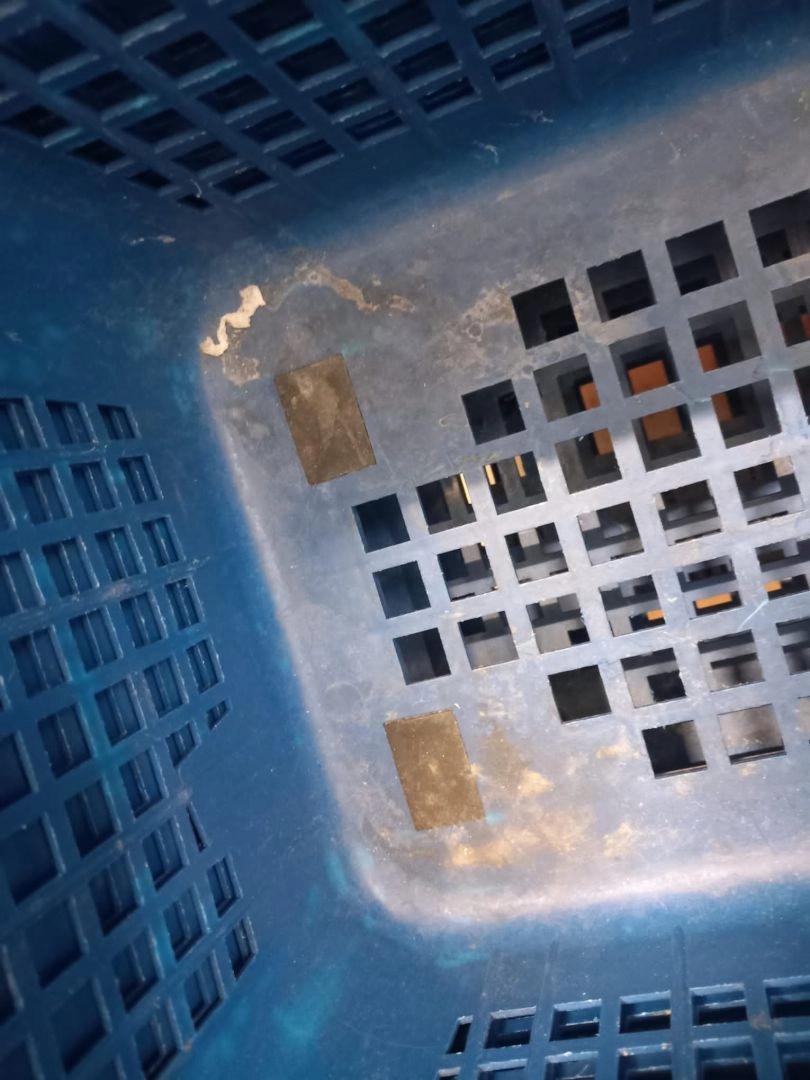 - prezența unor urme de resturi alimentare, murdărie, scurgeri de lichide, resturi de ambalaje/hârtii sau frunze de la produse și strat gros de praf depus pe marginile coșurilor,