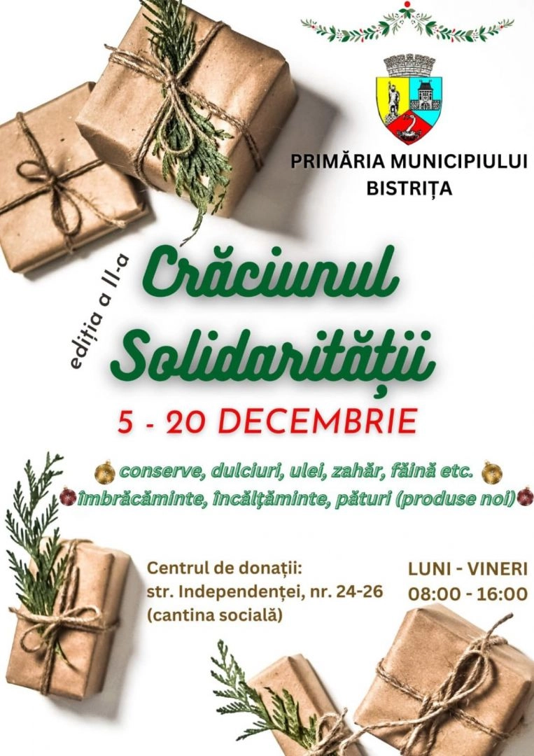 Crăciunul Solidarității. Bistrițenii sunt invitați să facă donații pentru oamenii nevoiași