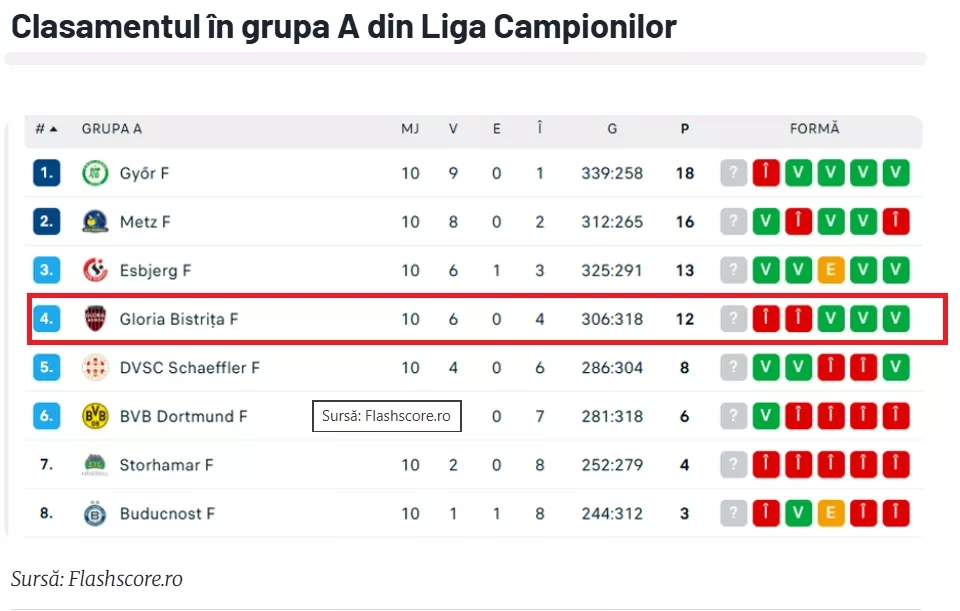 - Marcatoare principale (Gloria Bistrița): Lorena Ostase (7 goluri), Danila So Delgado (5), și Jennifer Gutiérrez (4).