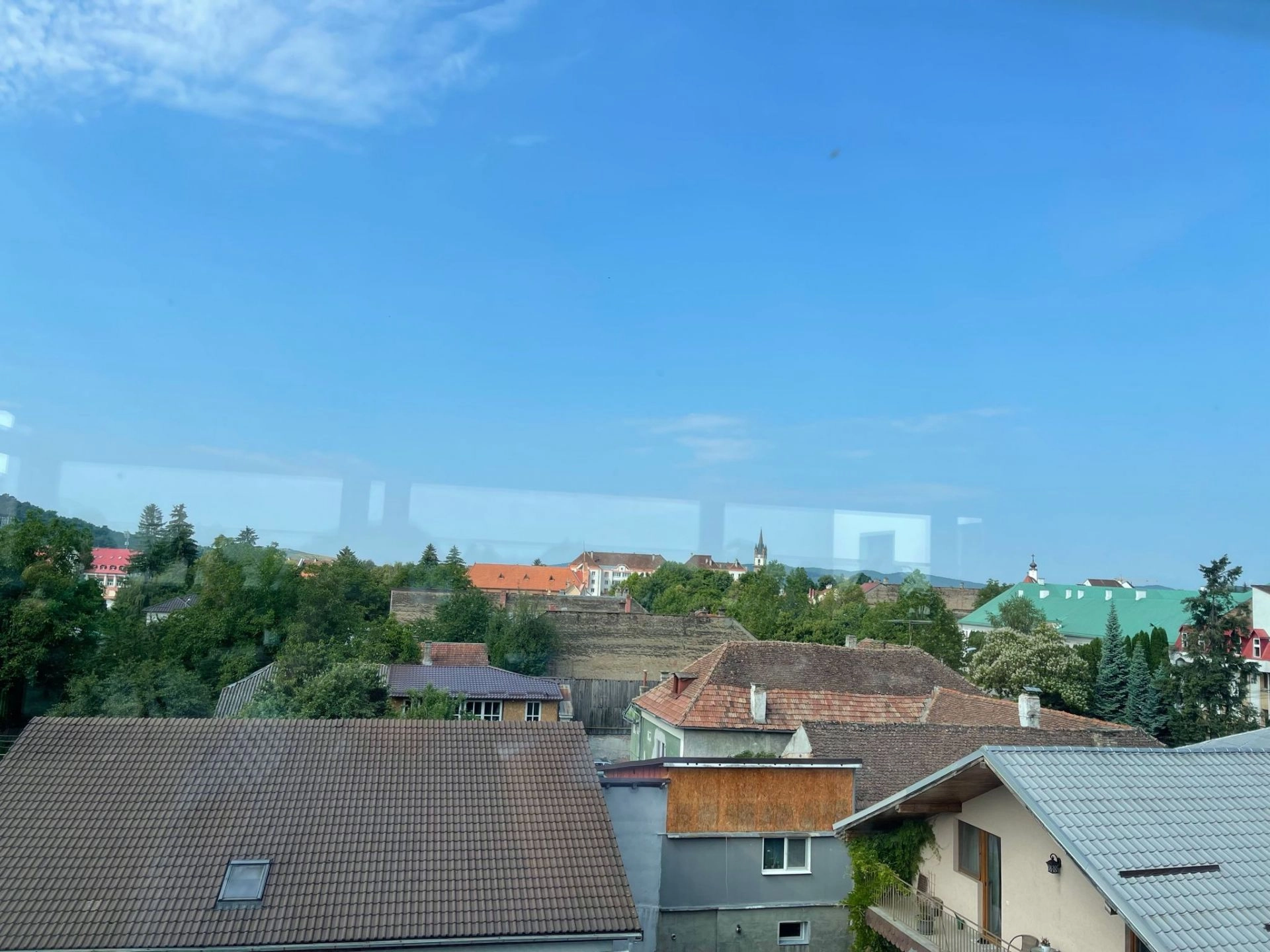 Am stat pe terasă, de unde se vede frumos, în plan apropiat acoperișurile unor case și, în depărtare vezi orașul, turnul Bisericii Evanghelice. Păcat că nu avem mai multe astfel de restaurante și cafenele în Bistrița, la înălțime.