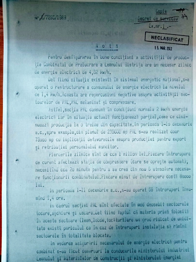 Cum se făcea economie la energie la fostul CPL din Bistrița, în 1989 (FOTO-DOCUMENT)