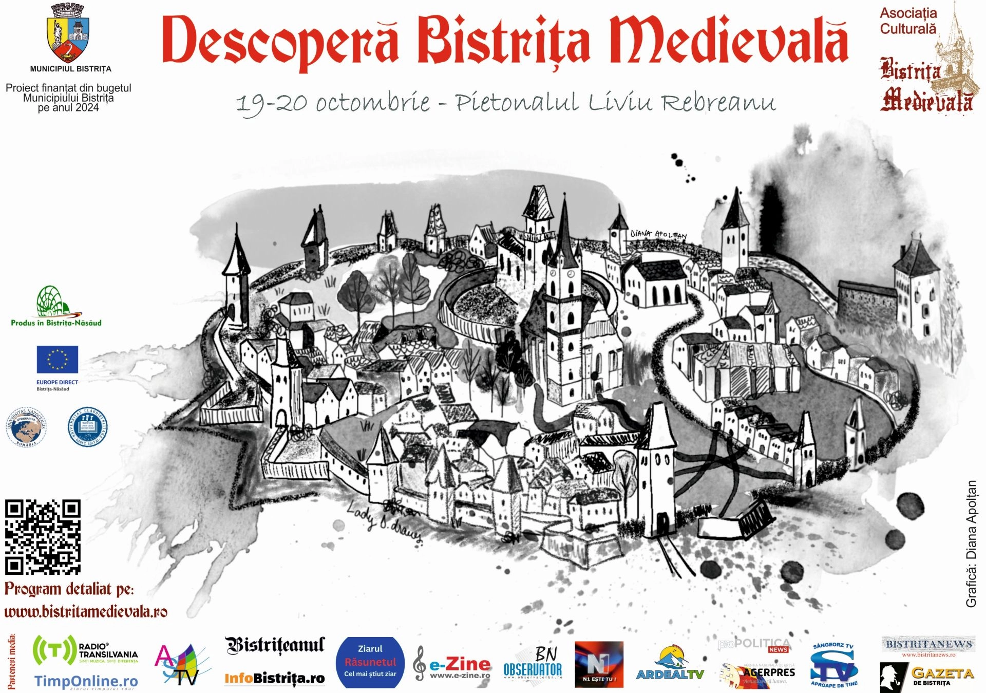 Astfel, în perioada 19-20 octombrie în centrul istoric al municipiului veți putea participa la jocuri medievale, „vânători de comori”, tururi ghidate, momente de animare culturală, ateliere creative și meșteșugărești și Târgul Produs în Bistrița-Năsăud.