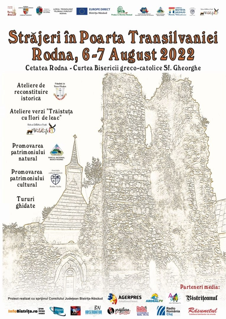 Cu sprijinul Consiliului Județean Bistrița-Năsăud, Asociația Culturală Bistrița Medievală organizează, în perioada 6-7 august 2022, un șir de activități incluse în proiectul „Străjeri în Poarta Transilvaniei”. Desfășurate într-un amplu parteneriat, împreună cu Primăria comunei Rodna, Liceul Tehnologic „Florian Porcius” Rodna, Europe Direct Bistrița-Năsăud, Asociația ”Produs în Bistrița-Năsăud”, Filiala Bistrița-Năsăud a Asociației Comunelor din România, Administrația Parcului Național Munții Rodnei, Asociația cultural-istorică Rodna Veche, Asociația WildLife Ro, Biserica Greco-Catolică Sf. Gheorghe Rodna acestea includ: