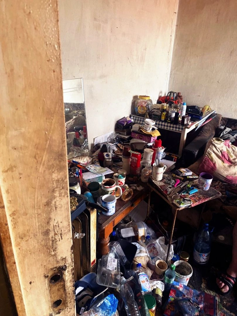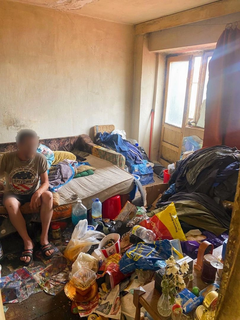 Un bistrițean trăiește în condiții de neimaginat, într-un apartament din municipiul Bistrița. Vecinii au contactat autoritățile, îngroziți de mirosul care se simțea pe scară.