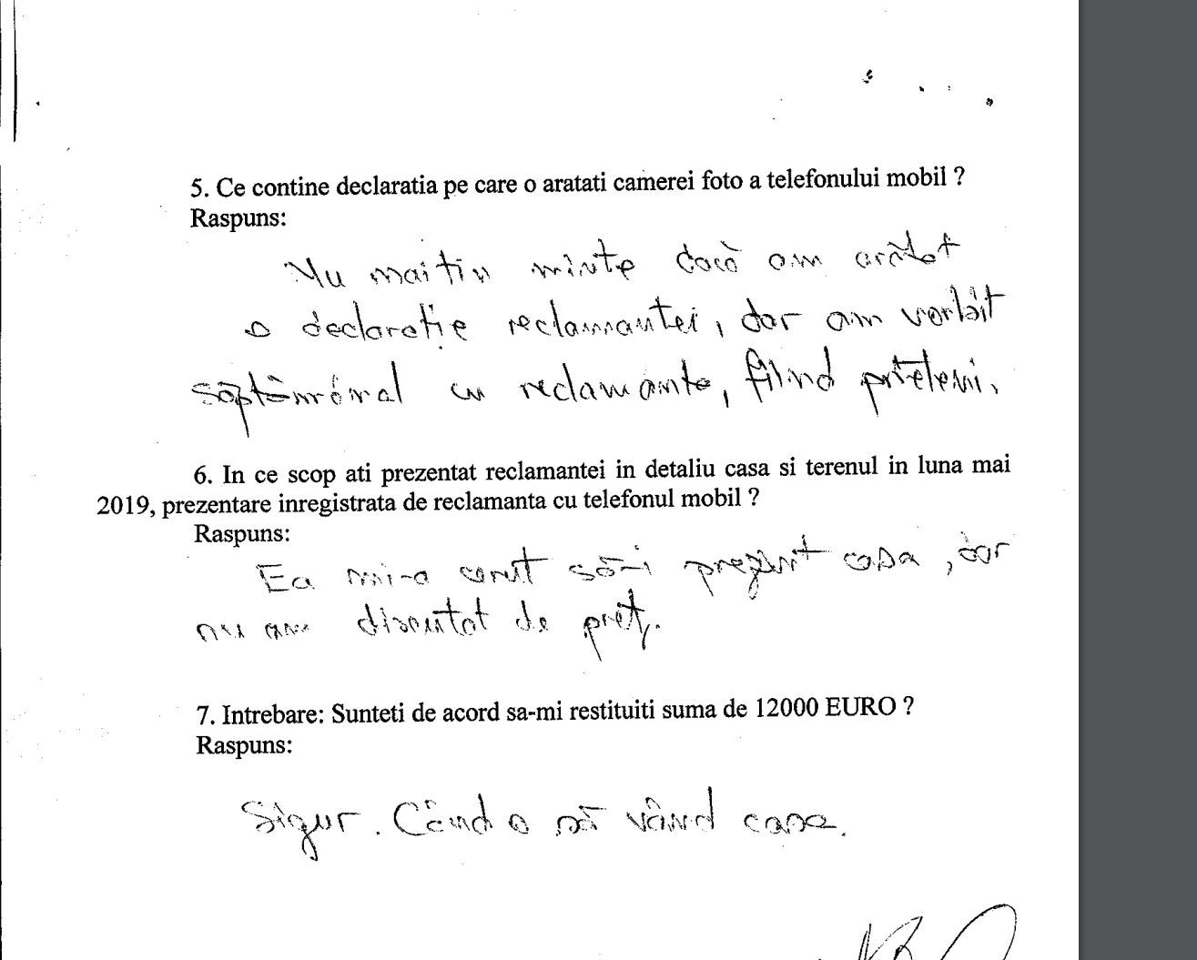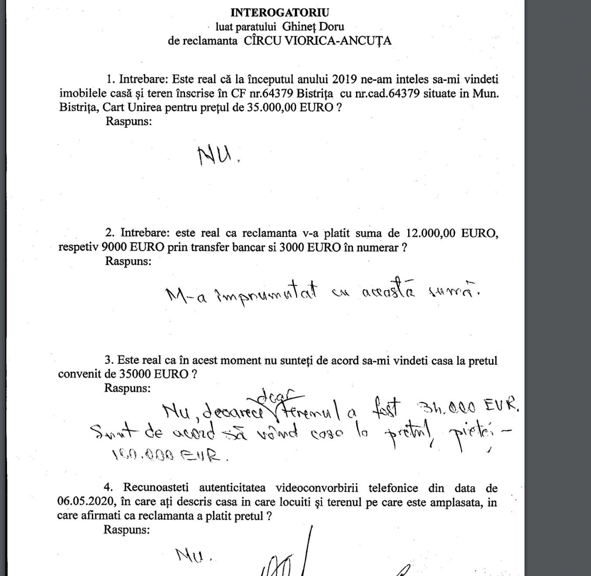 În final, la interogatoriu, Doru Ghineț spune că este de acord să îi restituie Ancuței Cârcu suma de 12.000 de euro, când va vinde casa.