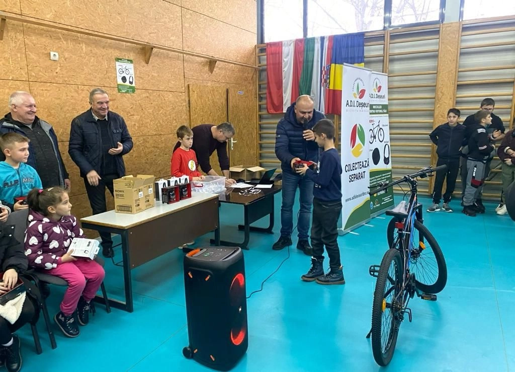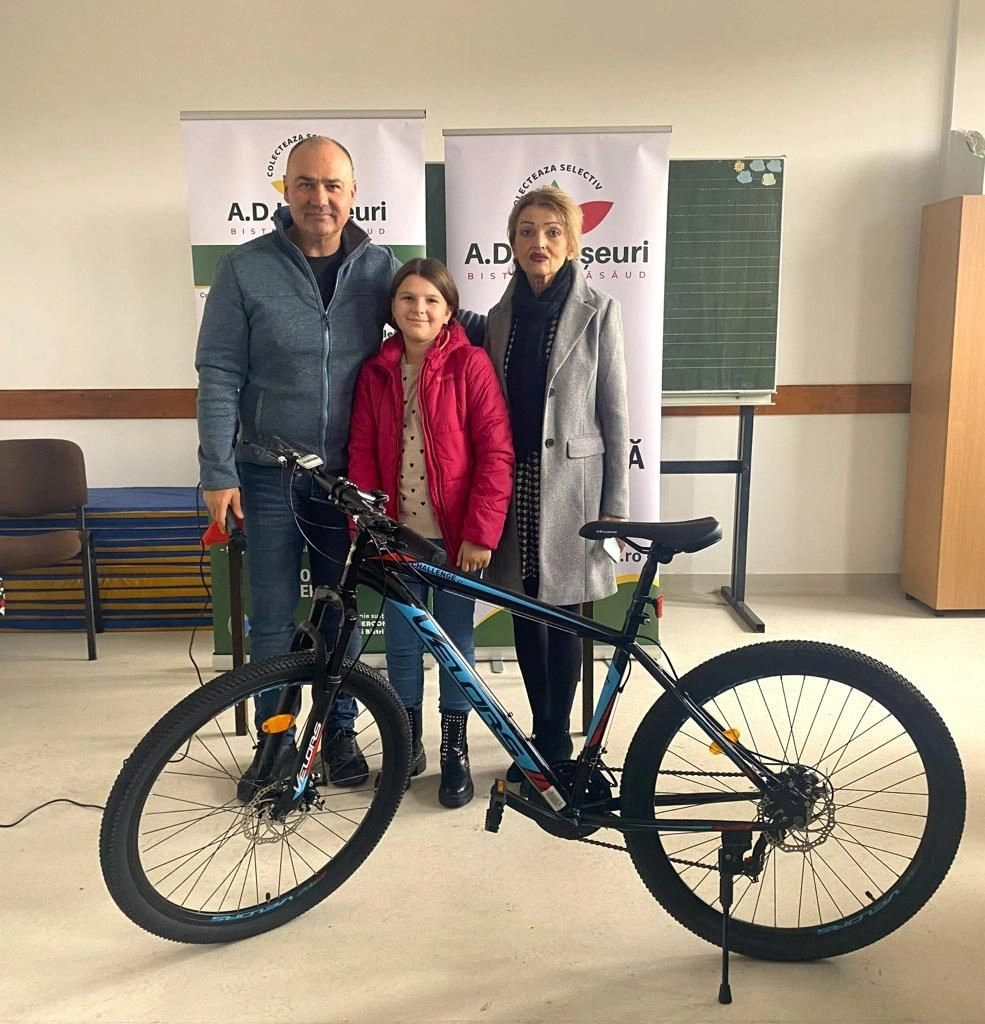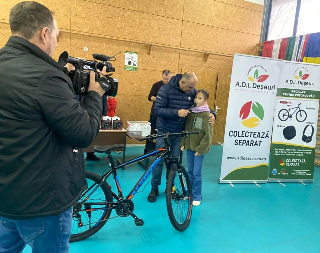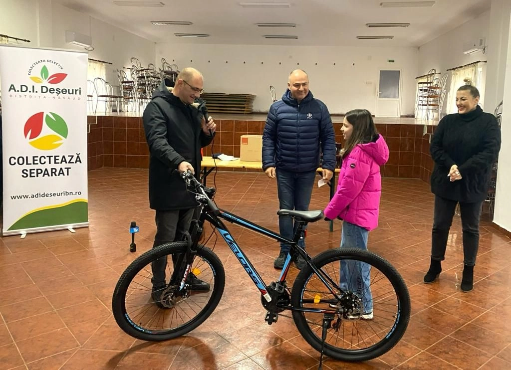 - La Școala Gimnazială din Șieu s-au adunat peste 4,7 tone, iar câștigătorul bicicletei a fost Denis Neagos cu 1,6 tone de deșeuri reciclabile aduse la școală.