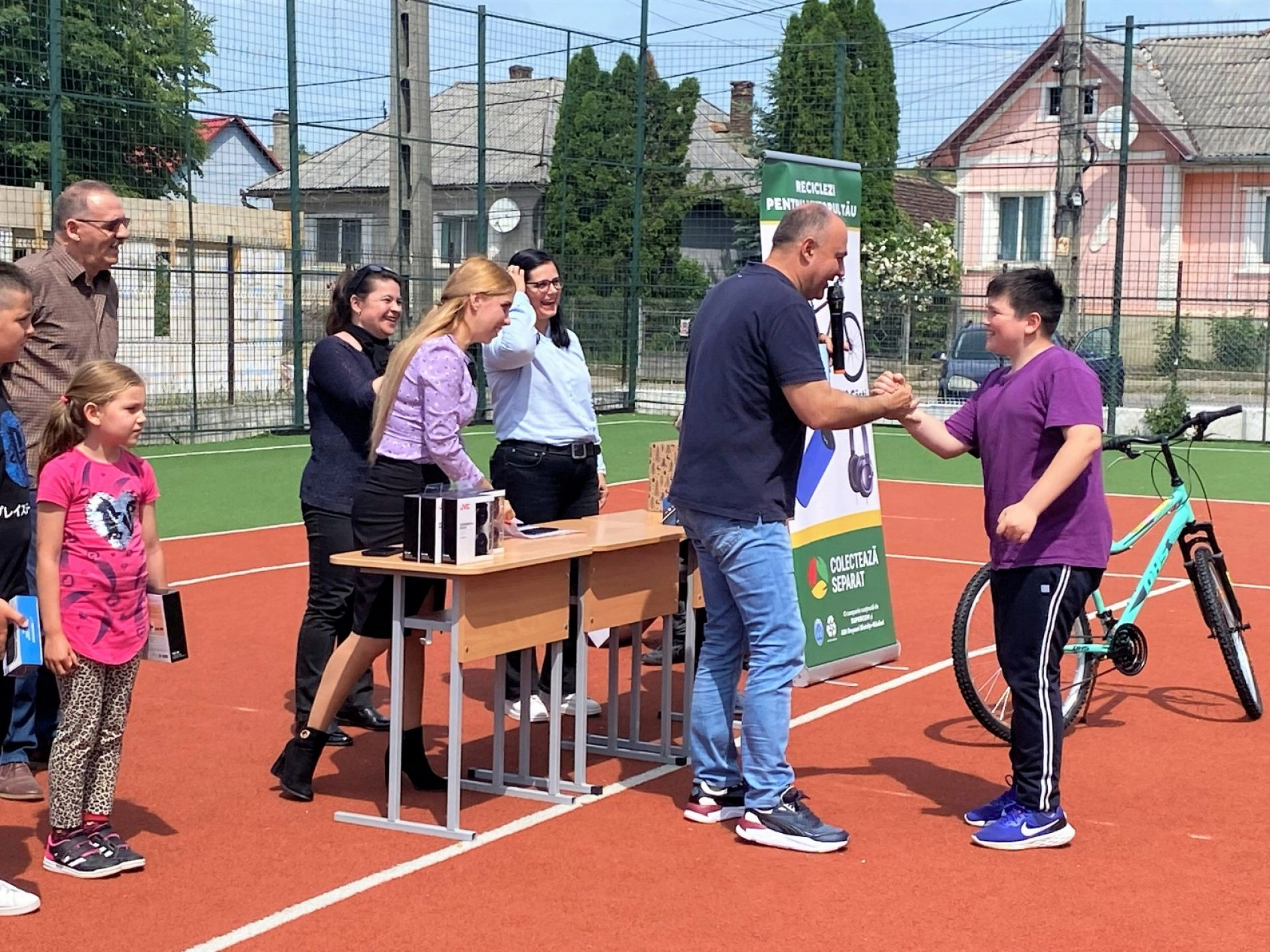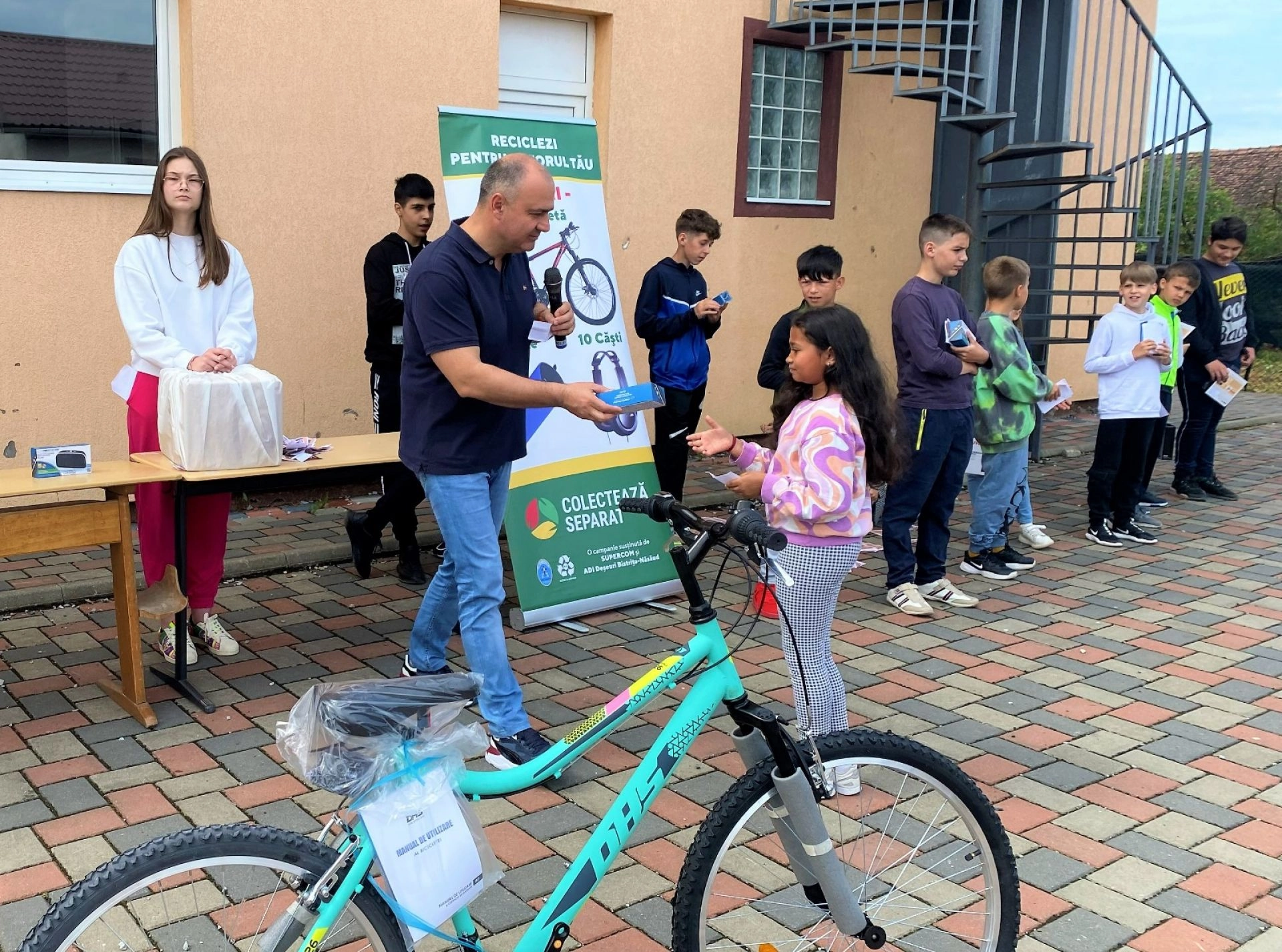 Școala Gimnazială Livezile a adunat o cantitate de 4,2 tone de deșeuri reciclabile, iar câștigătoarea bicicletei a fost eleva Haruță Giulia din clasa a VIII-a cu o cantitate de 819 kg.