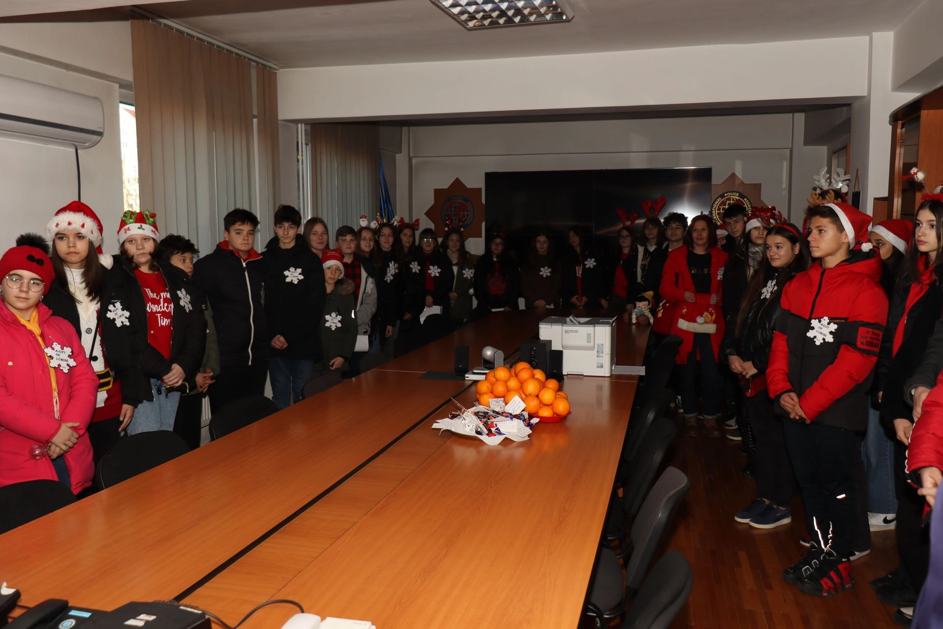 Elevii Școlii Gimnaziale ”Lucian Blaga” din Bistrița au adus spiritul Crăciunului în sediul Inspectoratului de Poliție Județean Bistrița-Năsăud