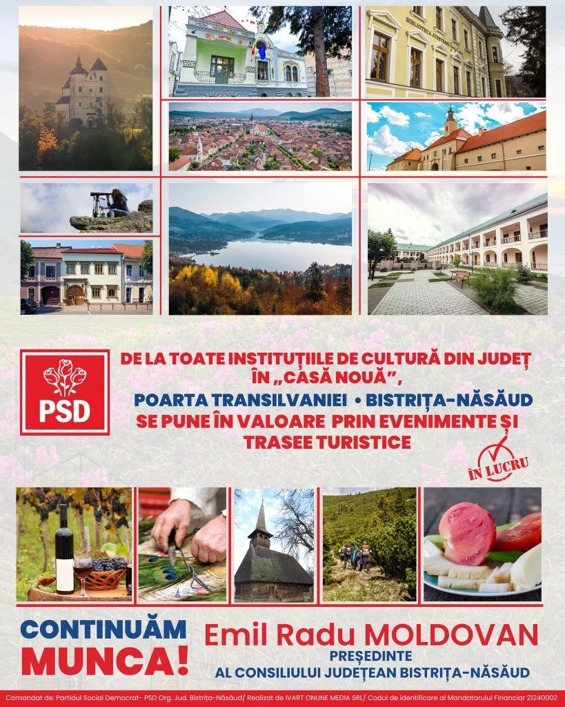 Comandat de: Partidul Social Democrat- PSD Org. Jud. Bistrița-Năsăud/ Realizat de IVART ONLINE MEDIA SRL/ Codul de identificare al Mandatarului Financiar 21240002