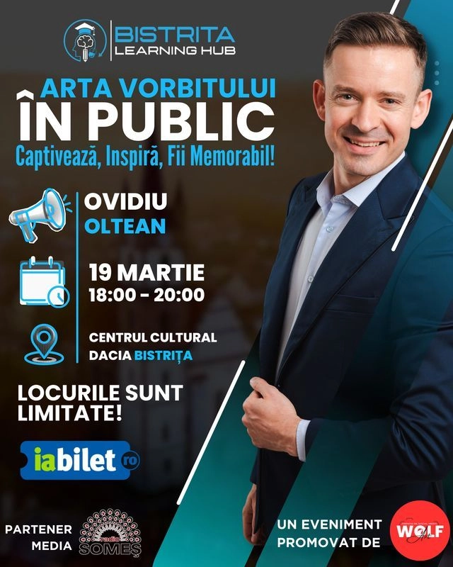 Bistrița Learning Hub se pregătește să își deschidă porțile cu un eveniment de anvergură pentru comunitatea bistrițeană, prin care le va oferi participanților metode prin care aceștia vor învăța să cucerească audiența prin discursuri în public.