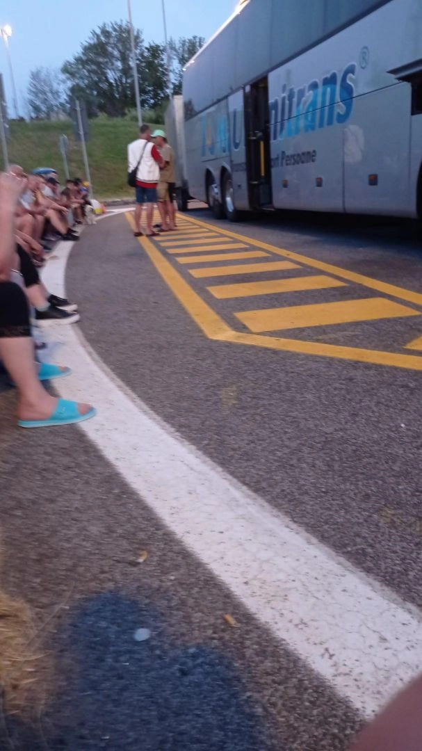 "Am luat legătura cu patronul și l-am rugat să ne ajute să ne putem caza undeva, pentru că eram foarte obosiți și aveam un copil de 11 luni între noi și aveam nevoie de ajutor. L-am rugat, de asemenea, să ne facă rost de apă și mâncare pentru că eram disperați. El ne-a închis telefonul în nas și ne-a spus că el nu ne dă absolut nimic. Totuși, unul dintre șoferi ne-a adus apă. De la ora 9 aproximativ de duminică și până la ora 16 luni am stat într-o benzinărie aproape de Trieste. Mâncarea ni s-a terminat sau s-a stricat pentru mulți pentru că erau 38 de grade. Eram disperați. Din nou, soțul doamnei a sunat de data aceasta la consulatul din Trieste. Au luat legătura cu noi și ne-au adus mâncare și apă. S-au interesat de situația noastră și ne-au urat succes. La ora 16 luni am fost preluați de către un autocar al firmei și am pornit la drum. Am avut din nou parte de umilințe din partea șoferilor care ne-au adus din Spania", a transmis femeia.