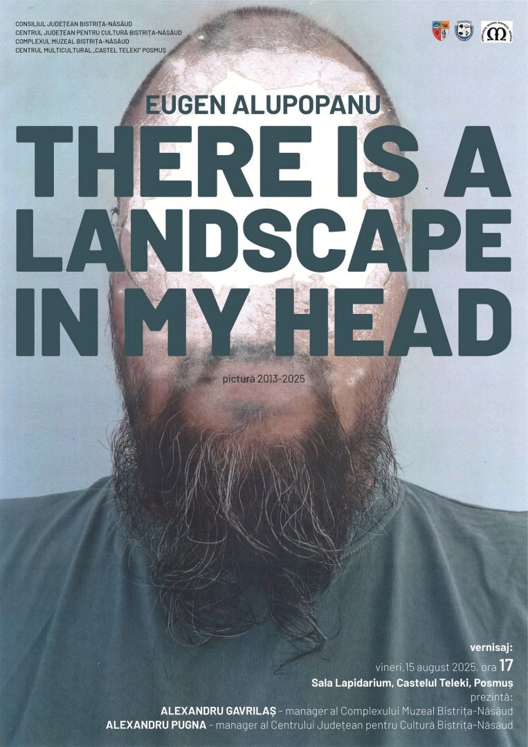 Consiliul Județean Bistrița-Năsăud, Centrul Județean pentru Cultură Bistrița-Năsăud, Complexul Muzeal Bistrița-Năsăud și Centrul Multicultural „Castel Teleki” Posmuș vă invită la vernisajul expoziției Eugen Alupopanu – „There Is a Landscape in My Head”, care va avea loc vineri, 15 august 2025, ora 17:00, la Sala Lapidarium, Castelul Teleki, Posmuș.