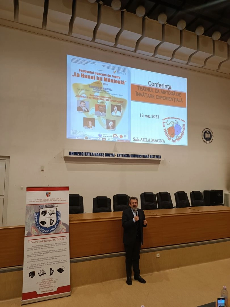 Festivalul-Concurs de Teatru „La hanul lui Mânjoală”, ediția a IX-a, a debutat cu o conferință națională având tema: „Teatrul – Metodă de învățare experiențială”, avându-i ca invitaţi de onoare pe actorii: Elena Ivanca, Rudy Moca și Adrian Titieni, cu o largă participare în sala Aula Magna din cadrul Extensiei Bistriţa a Universităţii „Babeş-Bolyai”.