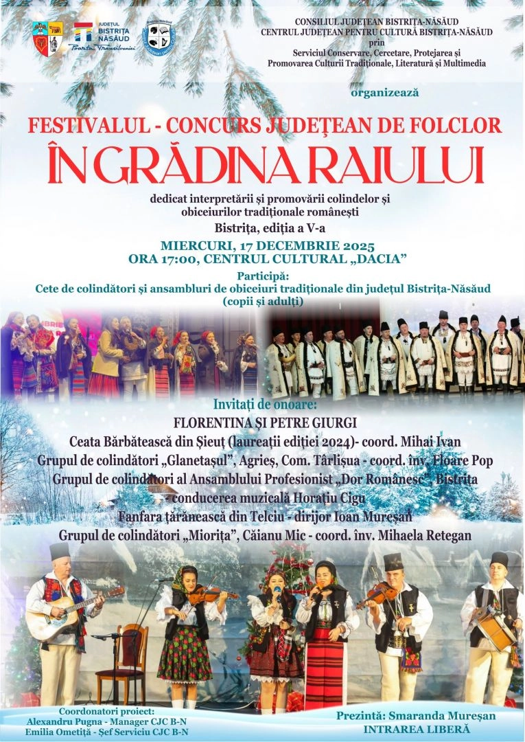 CONSILIUL JUDEȚEAN BISTRIȚA-NĂSĂUD, CENTRUL JUDEȚEAN PENTRU CULTURĂ BISTRIȚA-NĂSĂUD, prin Serviciul Conservare, Cercetare, Protejarea și Promovarea Culturii Tradiționale, Literatură și Multimedia