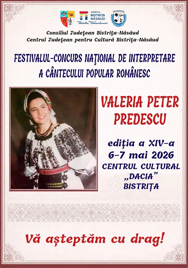 Festivalul – Concurs Naţional de Interpretare a Cântecului Popular Românesc „Valeria Peter Predescu”, ediţia a XIV-a, Bistriţa, 2026, va fi organizat de către Consiliul Judeţean Bistriţa-Năsăud, Centrul Judeţean pentru Cultură Bistriţa-Năsăud şi Fundaţia Culturală „Valeria Peter Predescu”.
