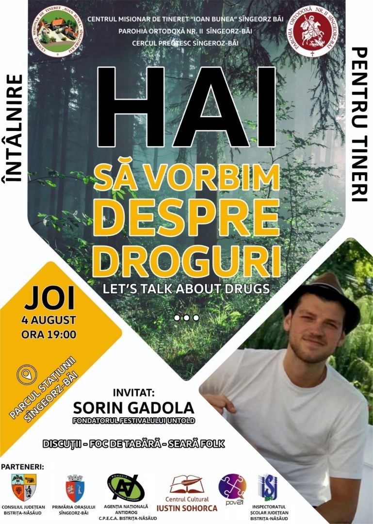 Centrul Misionar de Tineret "Ioan Bunea" Sângeorz-Băi, Parohia Ortodoxă Nr. II din Sângeorz-Băi și Cercul Preoțesc din Sângeorz-Băi organizează o acțiune de prevenire antidrog în orașul stațiune.