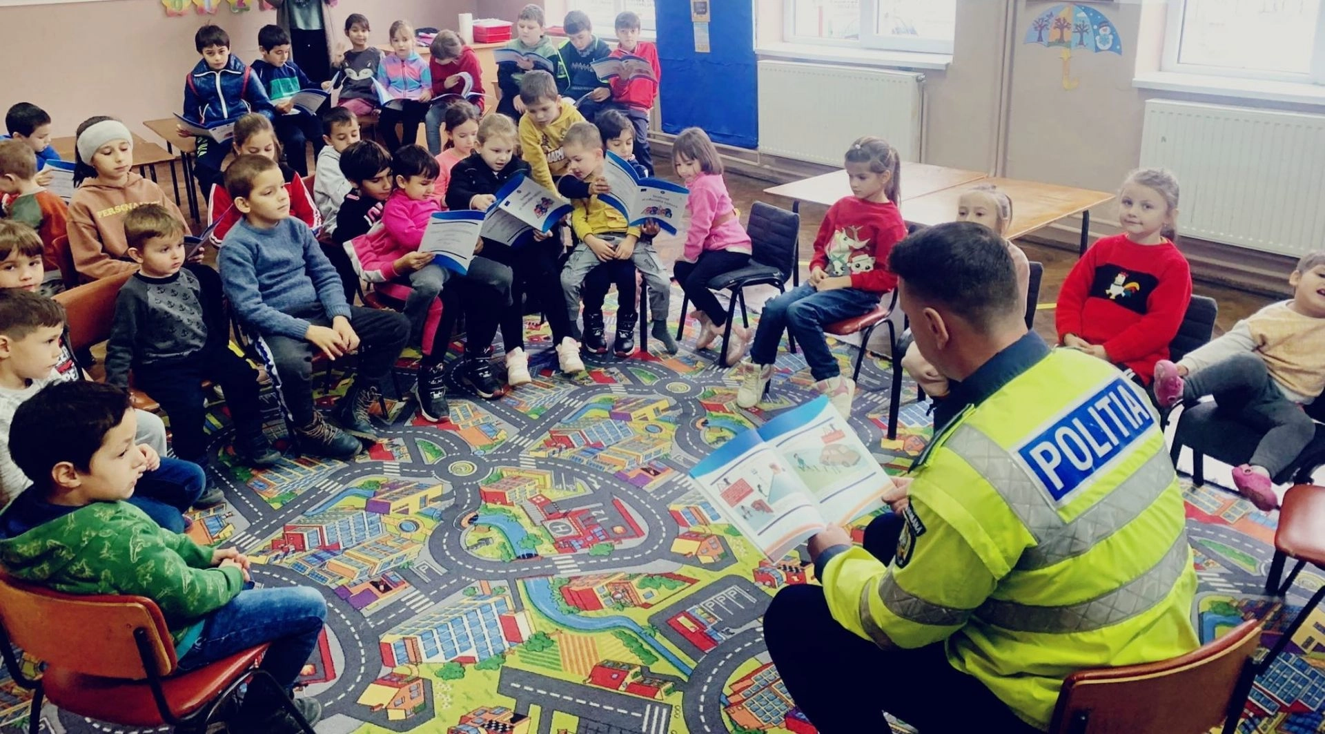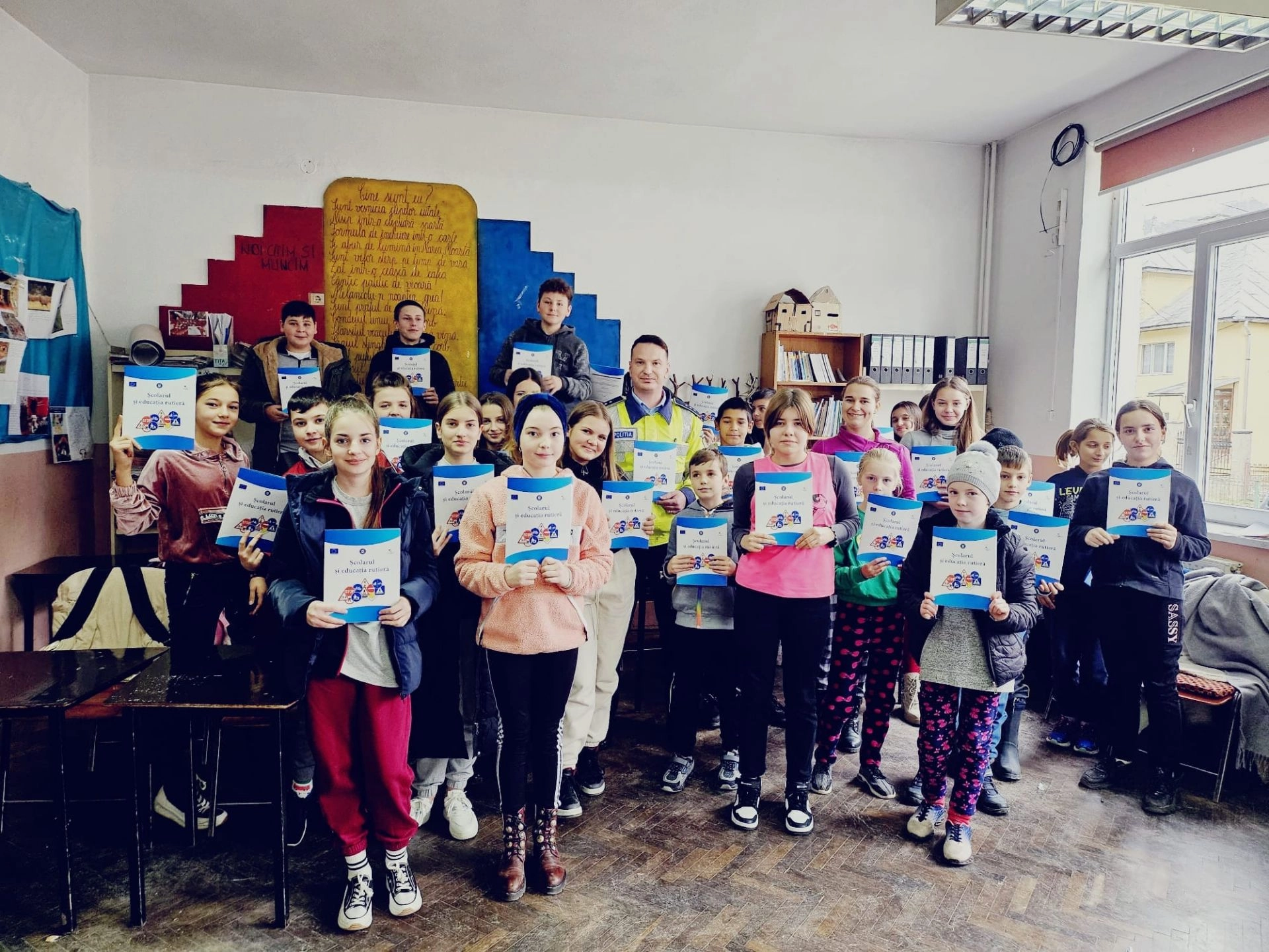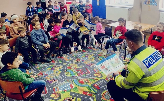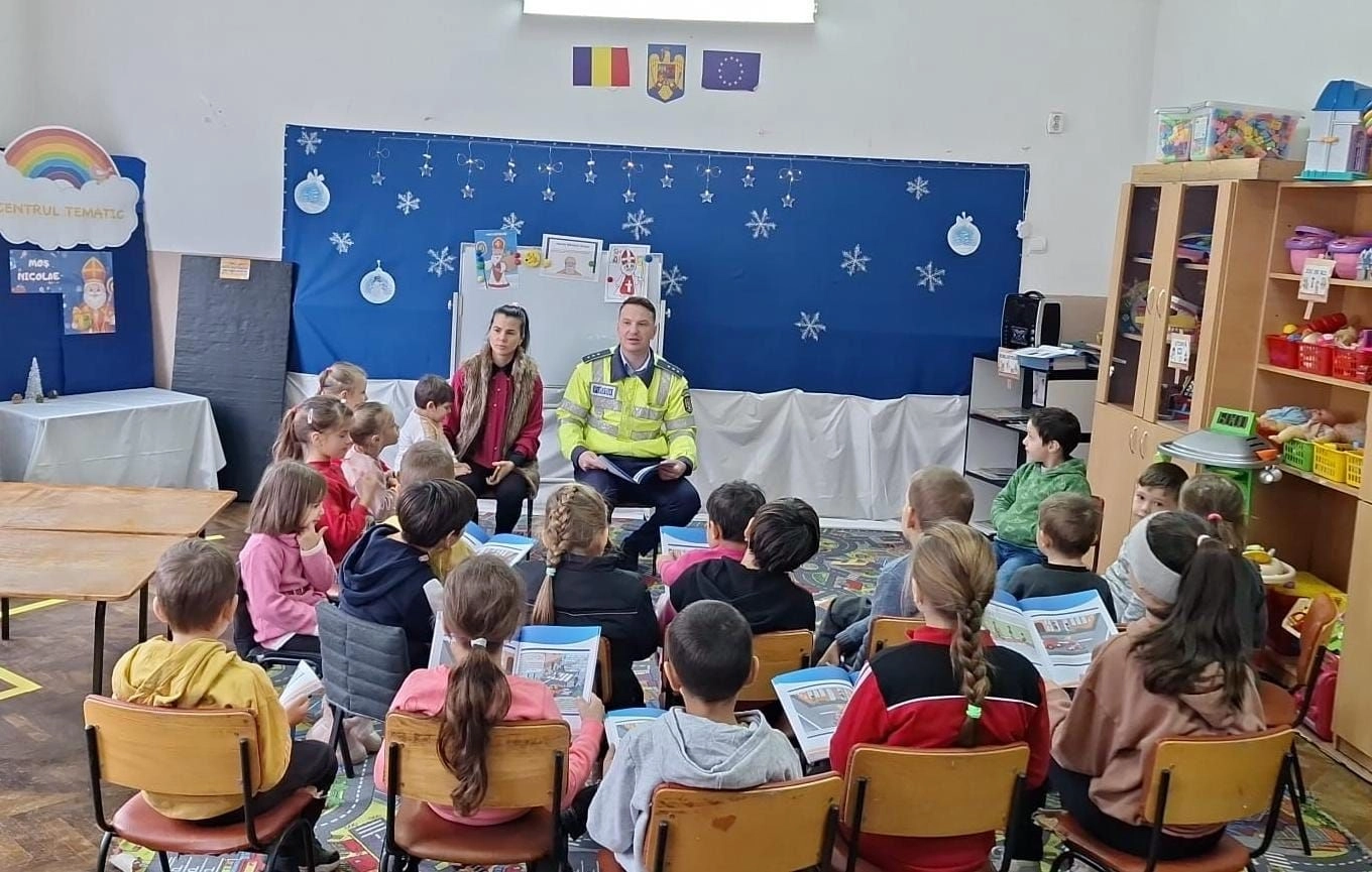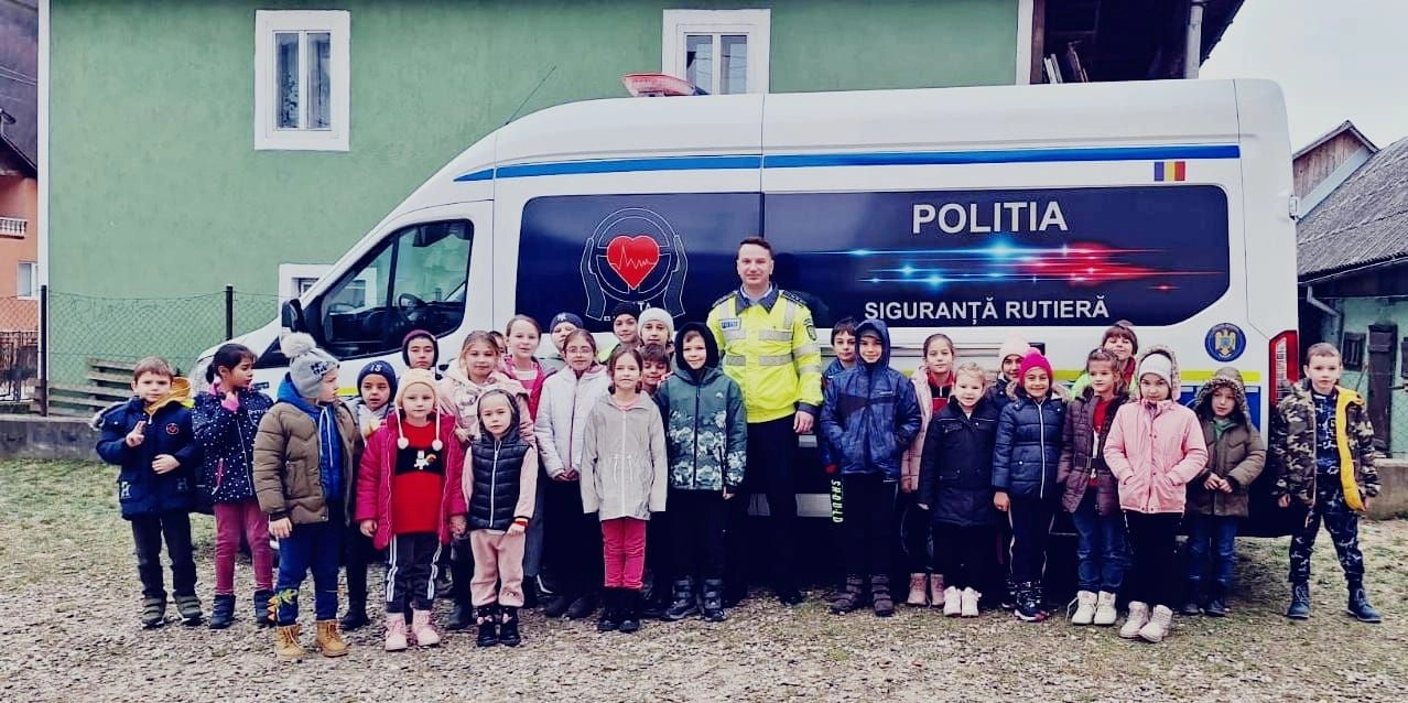 Peste 80 de astfel de cărți au fost dăruite ieri, 5 decembrie, de polițiștii Serviciului Rutier Bistrița-Năsăud în cadrul unei activități educativ-preventive. Cu ajutorul laboratorului mobil de educație rutieră elevii au repetat regulile de circulație pentru pietoni, bicicliști și alte categorii de participanți la trafic.