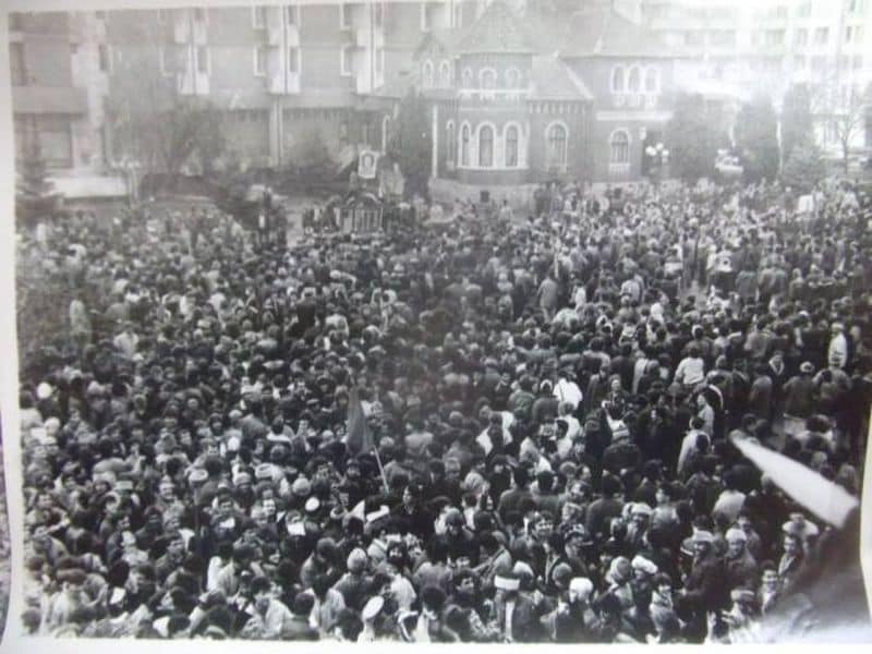 După spargerea mitingului, pe străzile din jur mii de oameni manifestează pentru democraţie şi împotriva dictaturii. Se aud lozincile: ”Democraţie!”, ”Libertate!”, ”Ieri în Timişoara, azi în toată ţara!”, ”Jos Ceauşescu!”. La ora 14.00 în centrul oraşului apar primele blindate şi autoamfibii.