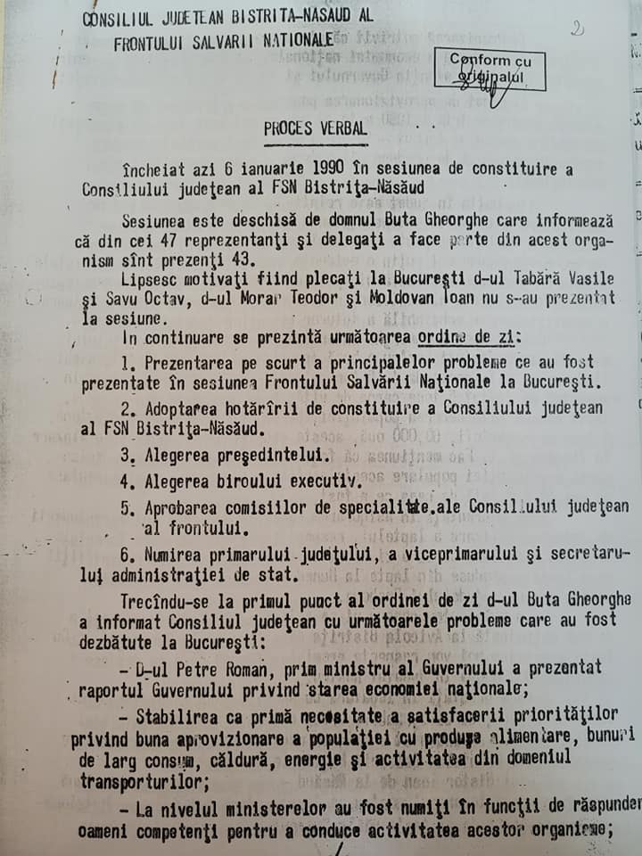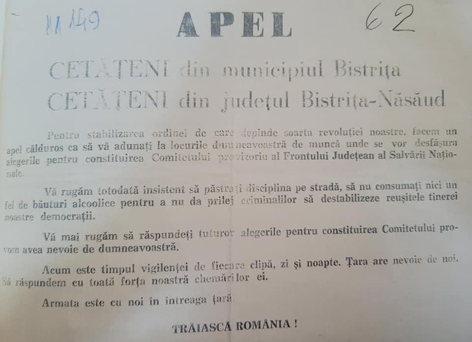 În seara zilei de 22 decembrie 1989 se constituie noul organism al puterii de stat – Frontul Salvării Naţionale (FSN), având drept scop ”instaurarea democraţiei, libertăţii şi demnităţii poporului român”. A fost făcut cunoscut, totodată, un program vizând democratizarea vieţii politice şi sociale în România. Programul cuprindea deziderate precum abandonarea rolului conducător al unui singur partid politic şi statornicirea unui sistem democratic pluralist de guvernământ; organizarea de alegeri libere în luna aprilie; separarea puterilor în stat; elaborarea unei noi Constituţii; promovarea liberei iniţiative în economie; sprijinirea micii producţii ţărăneşti; democratizarea învăţământului şi culturii; respectarea drepturilor şi libertăţilor minorităţilor naţionale; respectul deplin al drepturilor şi libertăţilor omului; integrarea în procesul de construire a unei Europe unite etc.