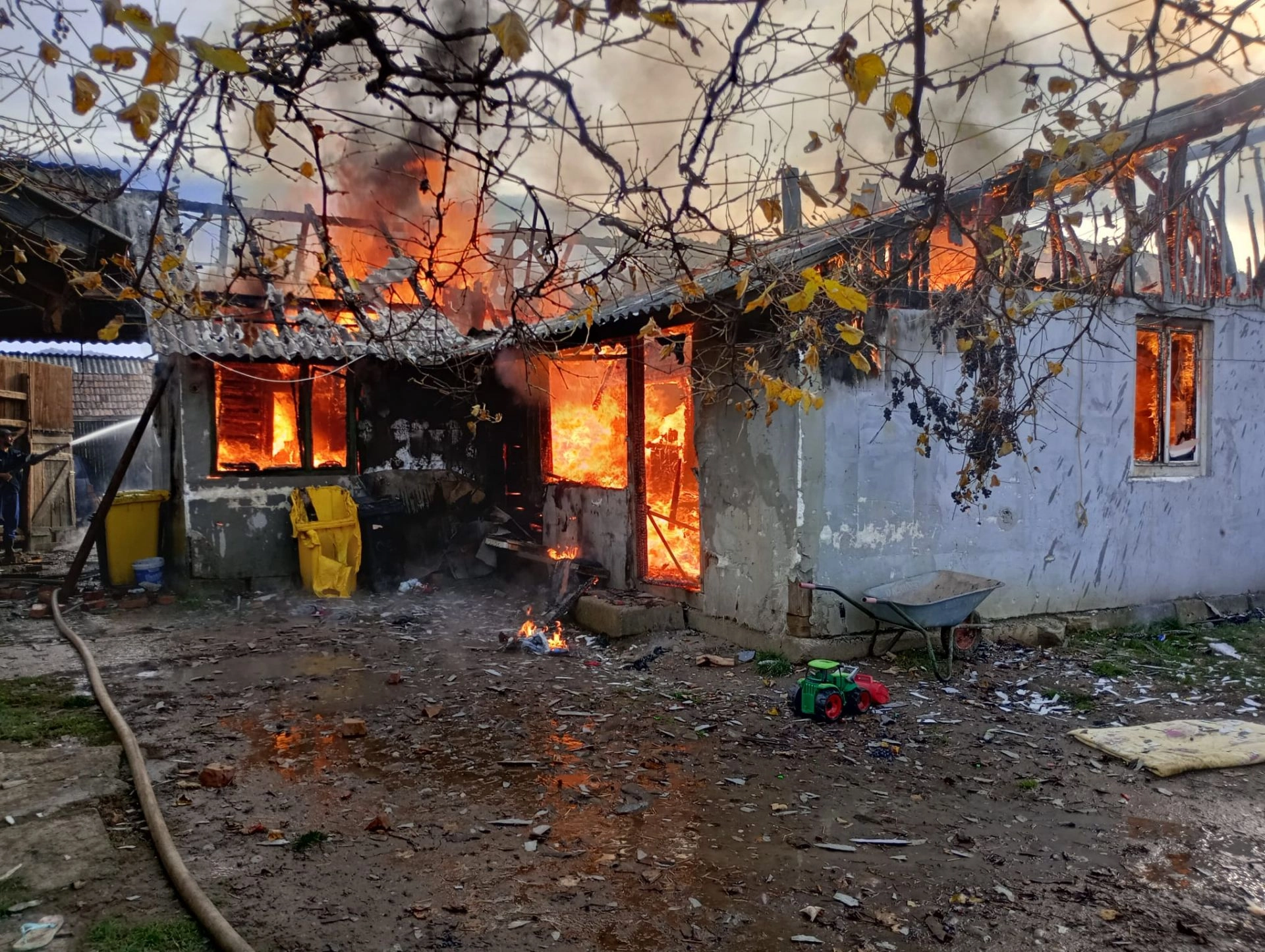 FOTO - Incendiu la Dorolea. A explodat o butelie, după ce un copil s-a jucat cu bricheta