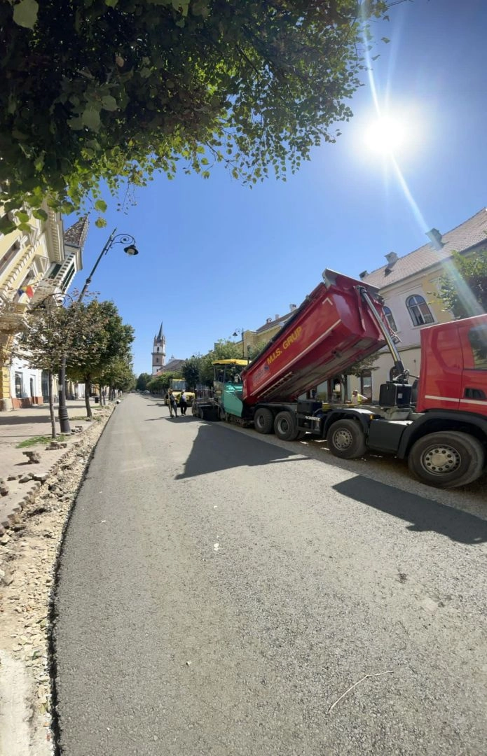 FOTO - Se toarnă asfalt pe strada Gheorghe Șincai din Bistrița