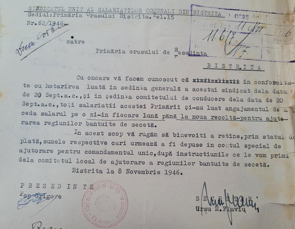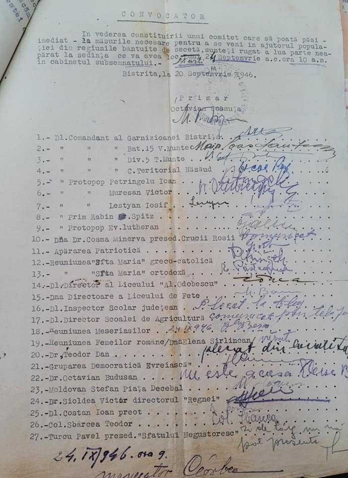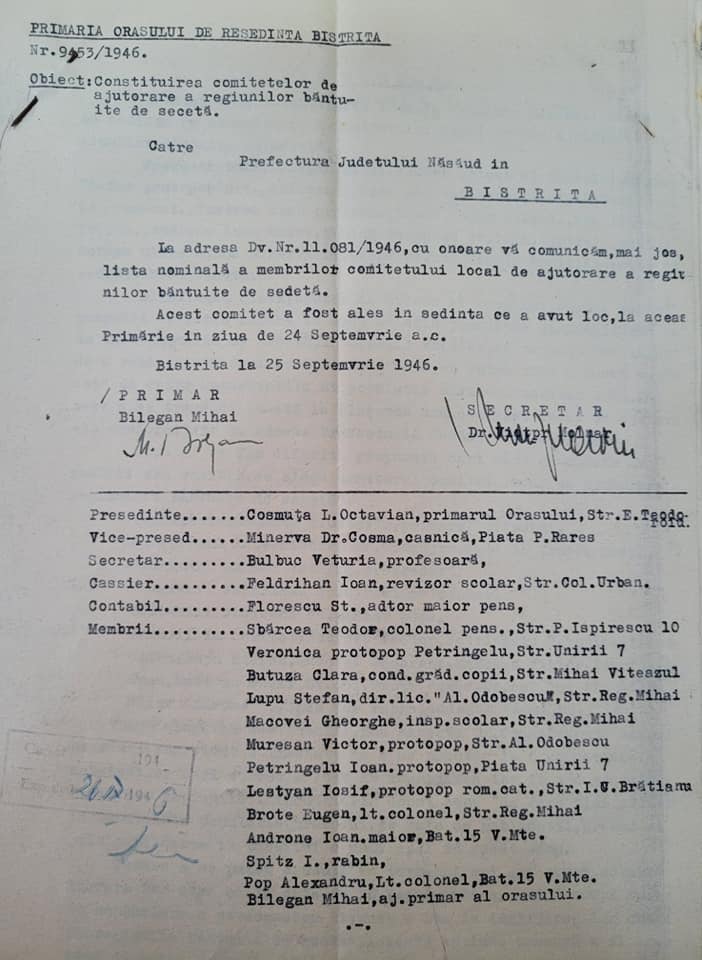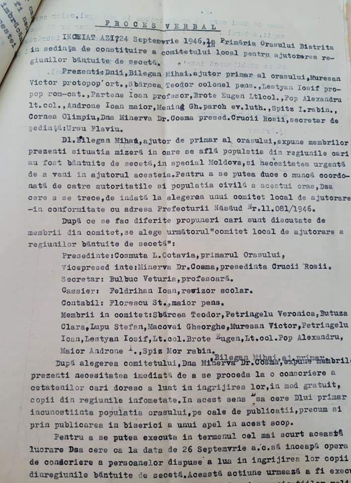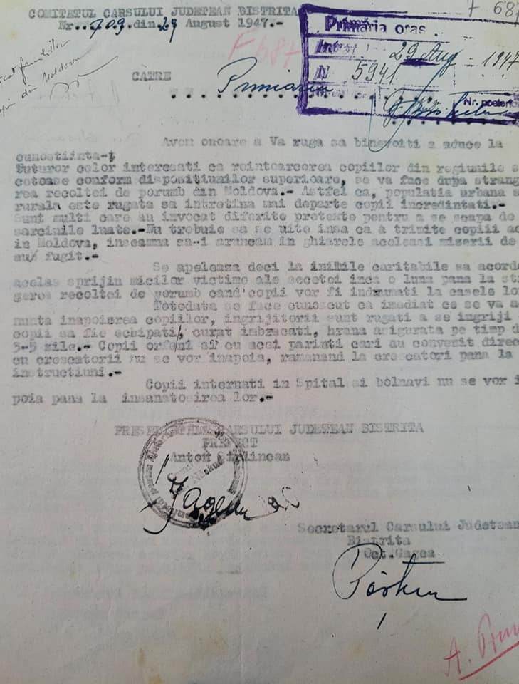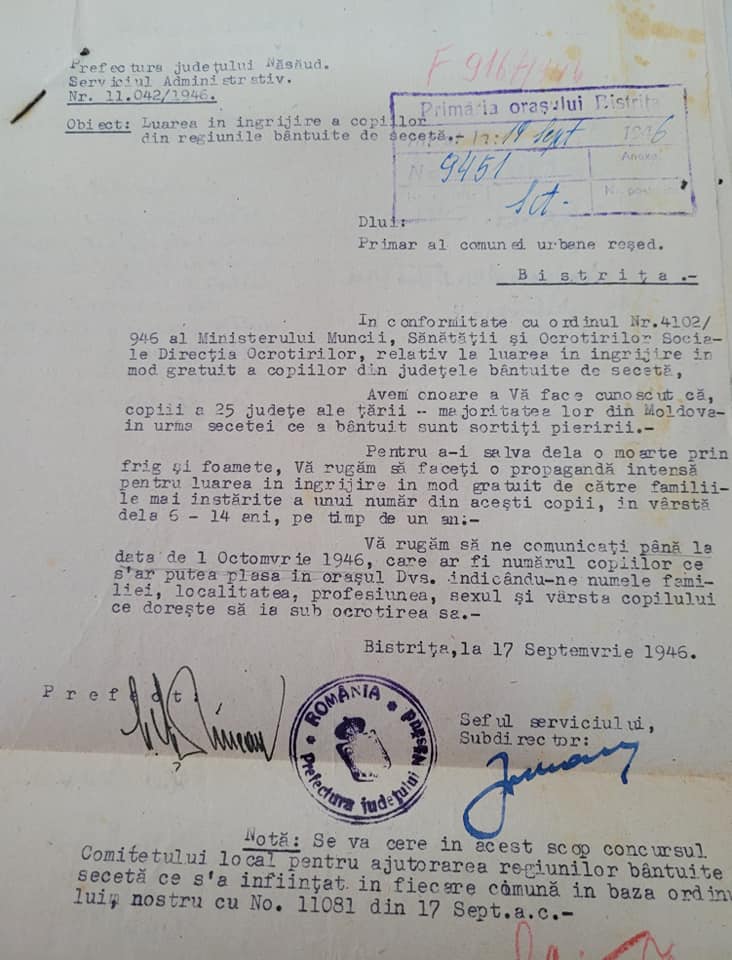 În județul Bistrița-Năsăud au fost îngrijiți 563 de copiii din Moldova în timpul “Marii Foamete” din anul 1946-1947, din care 79 în orașul Bistrița. La ajutorarea refugiaților au accesat numeroși cetățeni, toate cultele și forțele politice!