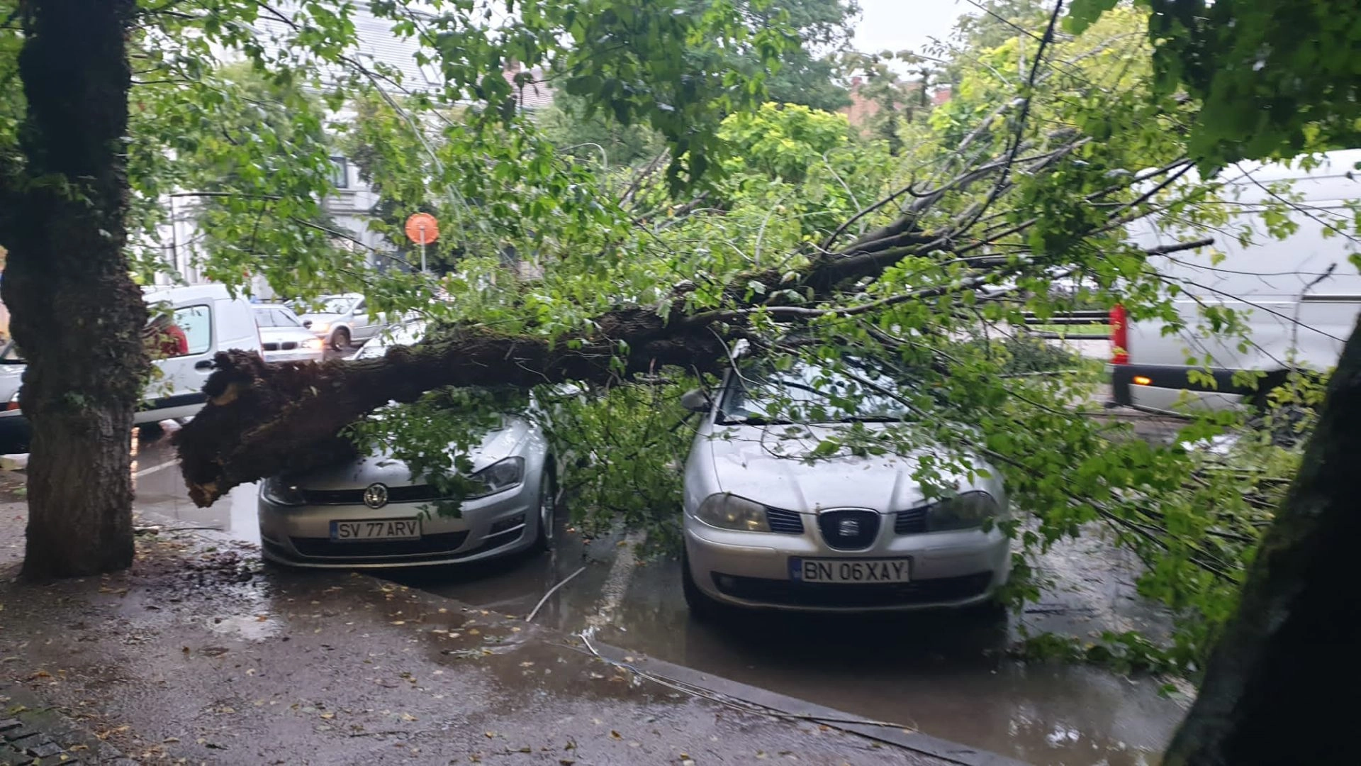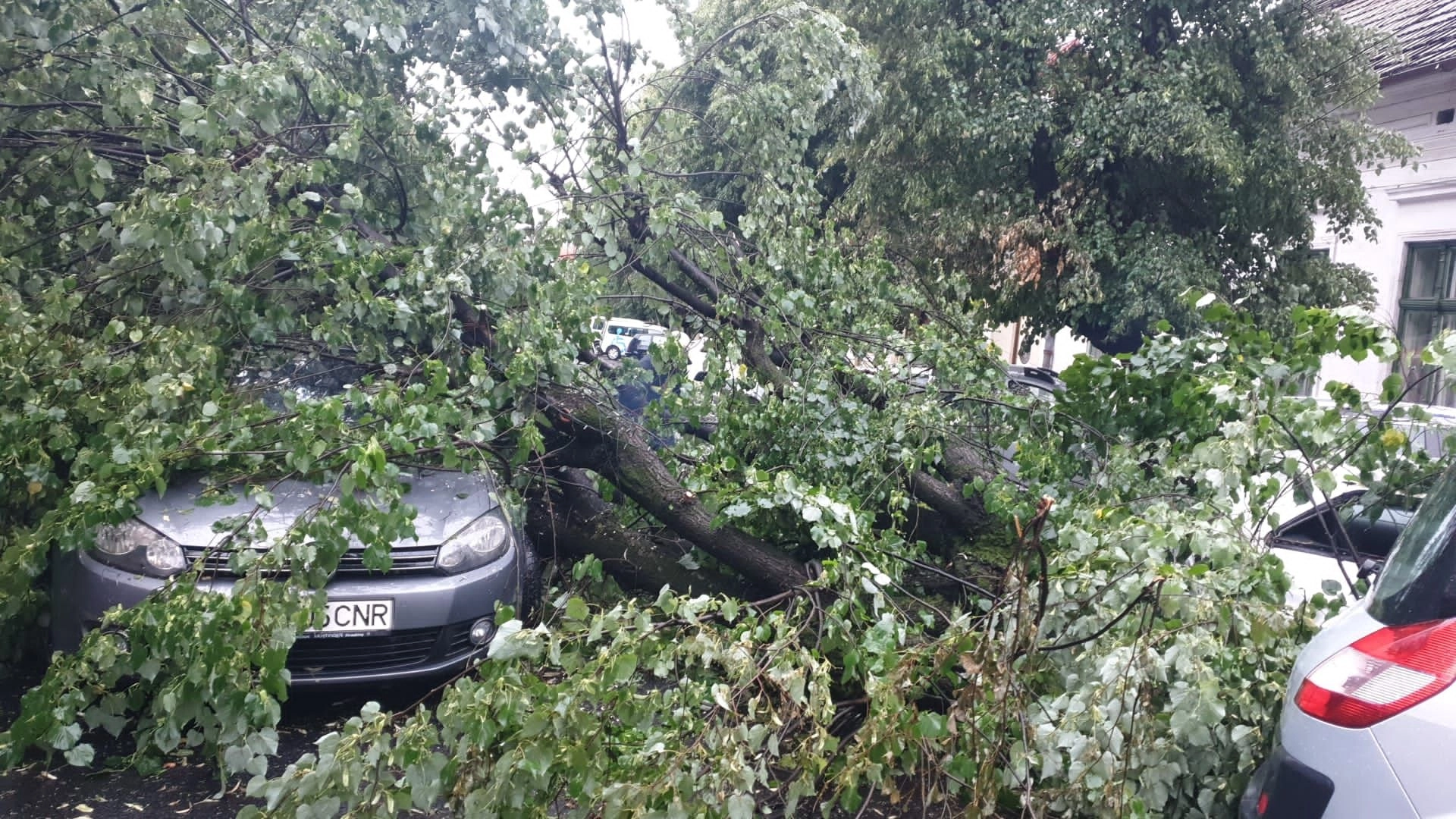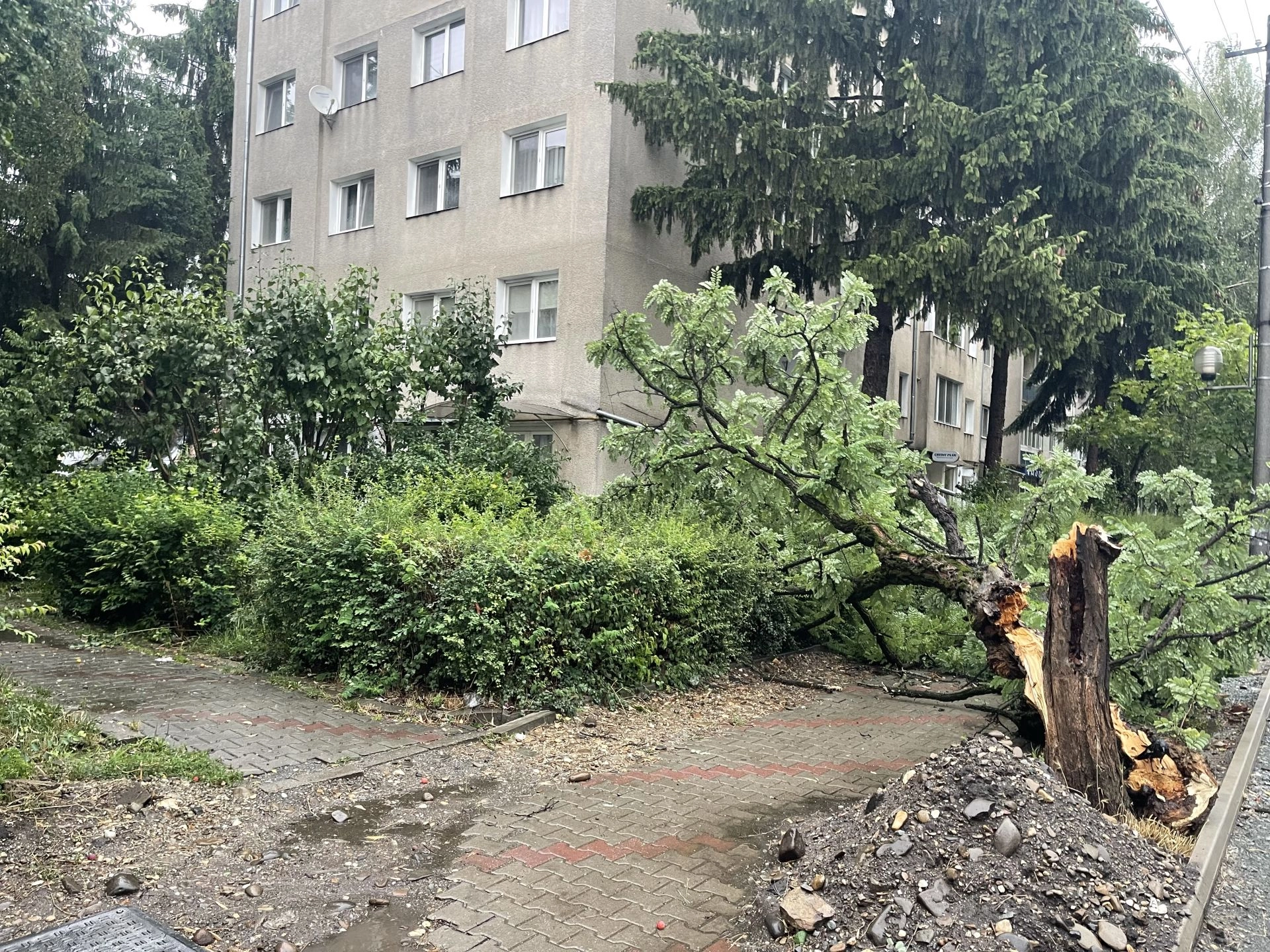 B-dul Republicii - copac căzut într-o curte peste un foișor