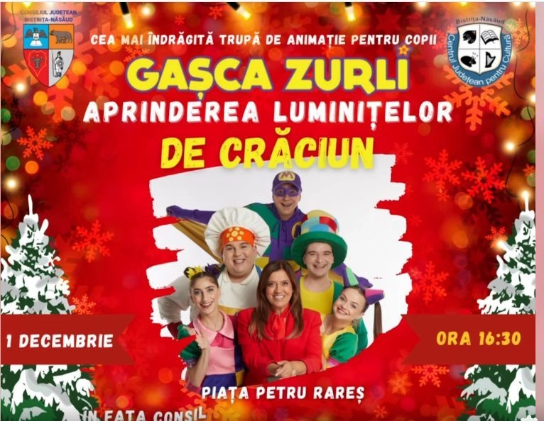Un spectacol pentru copii va avea loc la Bistrița, în fața Consiliului Județean Bistrița-Năsăud.