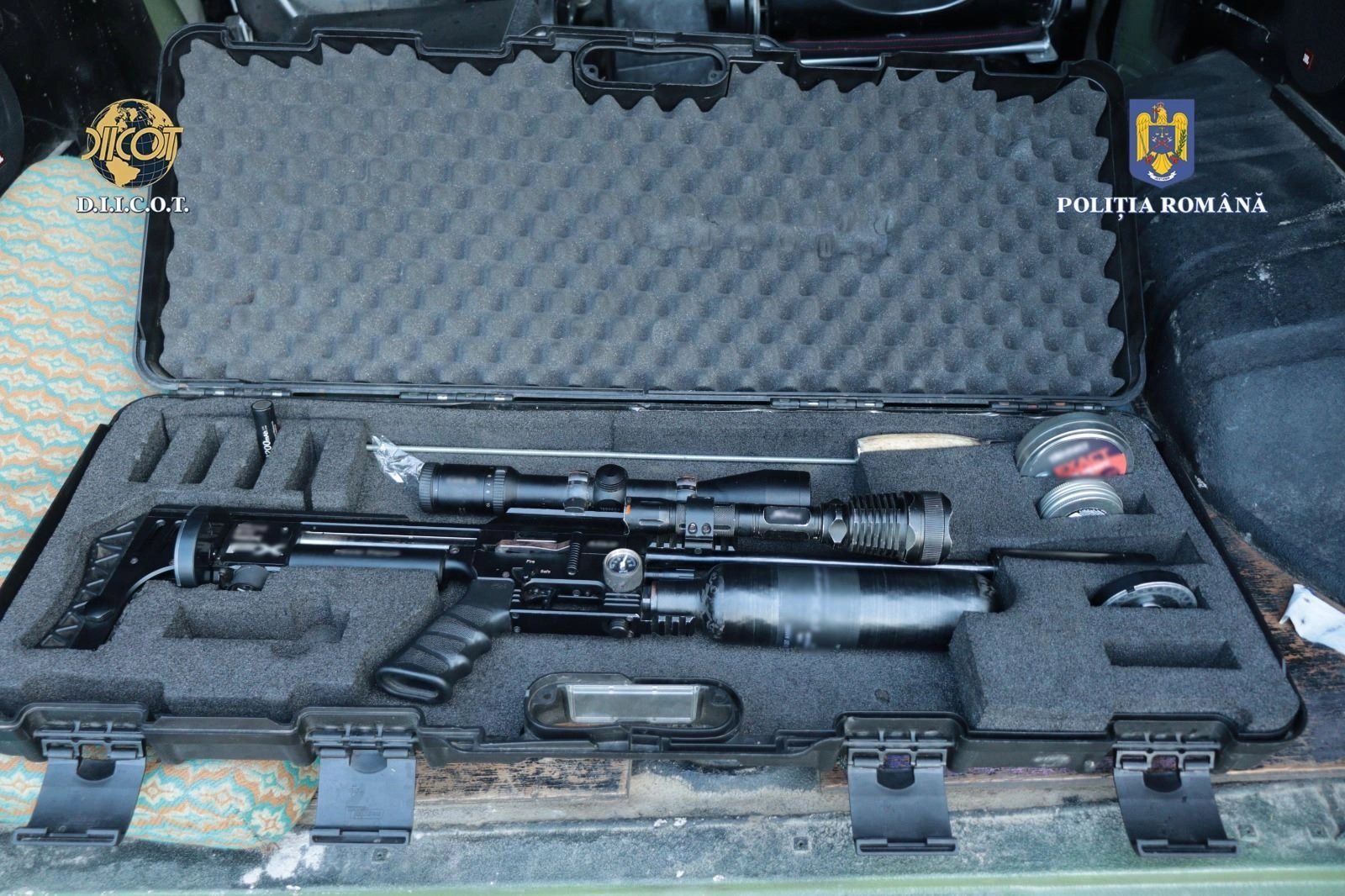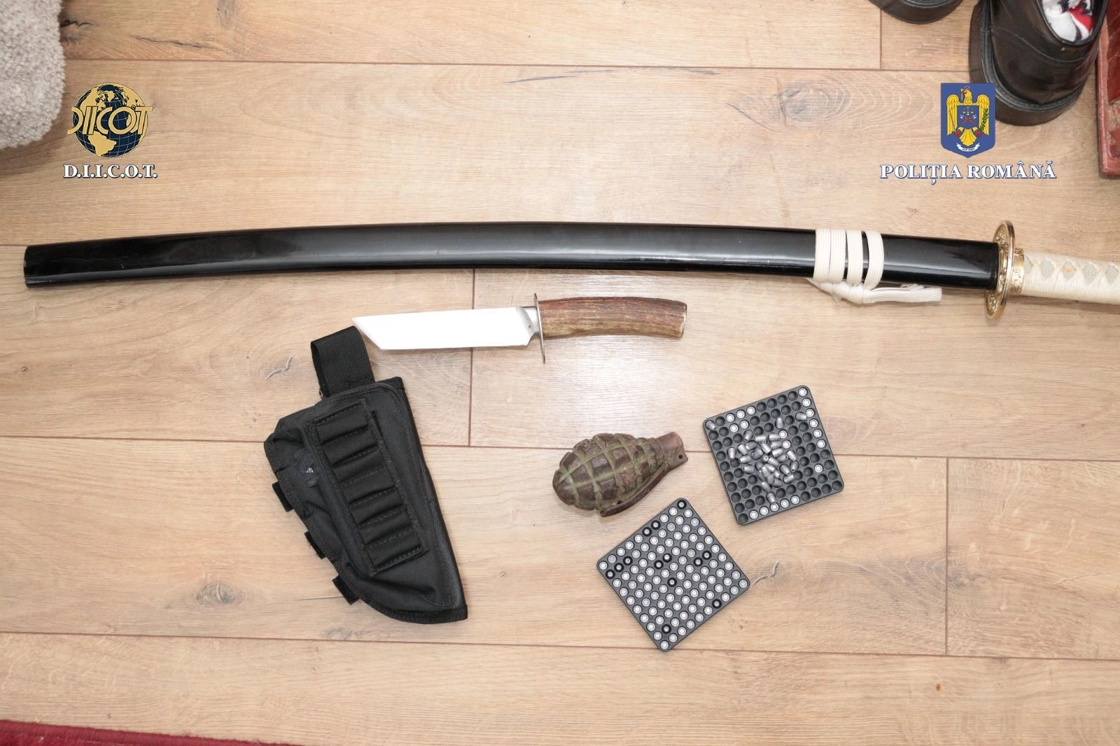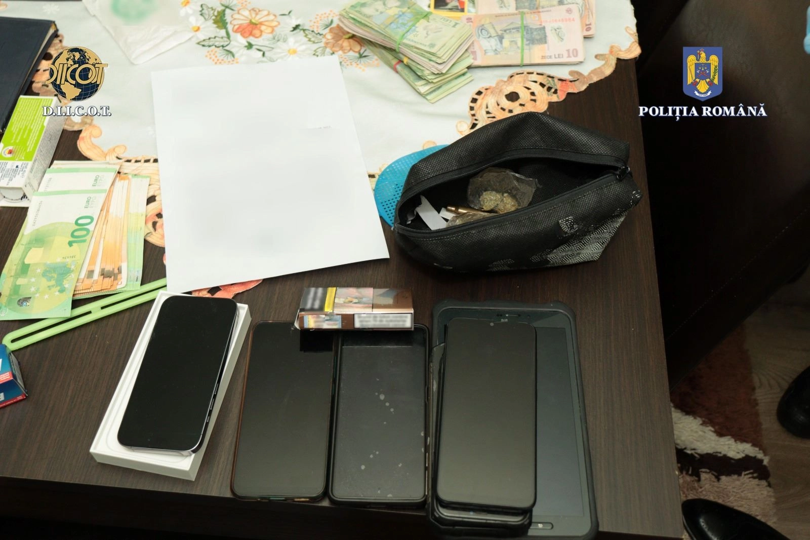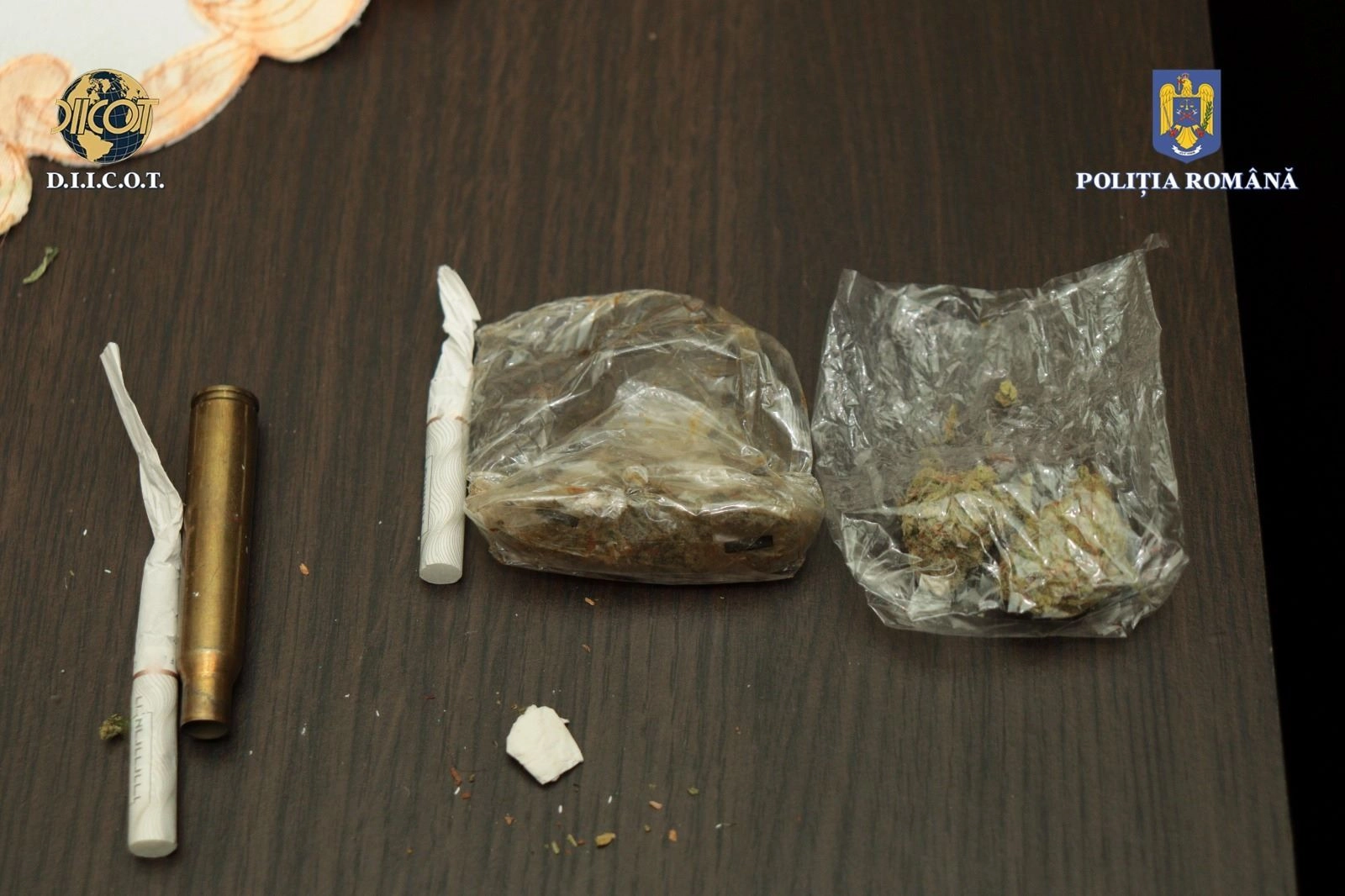 Tot în urma perchezițiilor, au fost ridicate 3 dispozitive night-vision, un dispozitiv cu termoviziune, o grenadă de manevră, 190 de kilograme de carne de vânat, 25 de trofee, 3 blănuri de animale sălbatice, 20 de telefoane mobile, diferite înscrisuri, sume de bani, bijuterii și diferite cantități de droguri de risc.