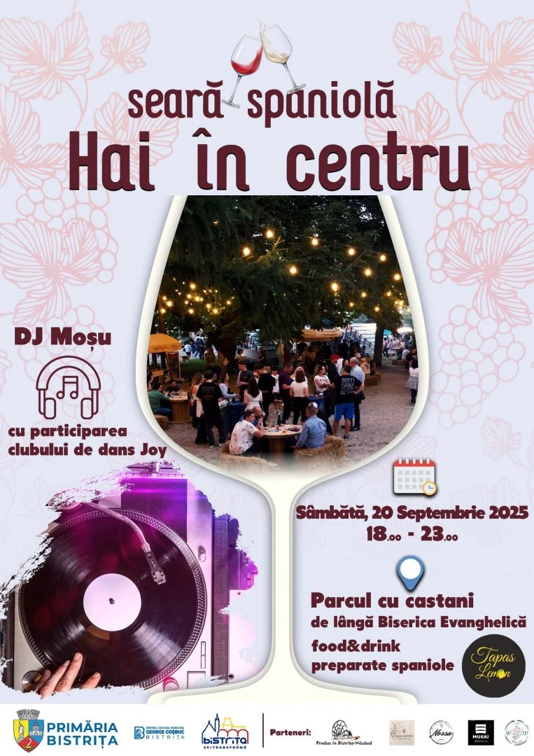 "Sâmbătă ne întâlnim din nou în centrul Bistriței, sub castani, pe ritmuri și arome spaniole. Hai în centru!", a transmis Primăria Bistrița