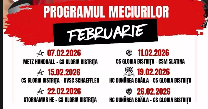 În ceea ce privește programul Gloriei Bistrița pe luna februarie, acesta arată în felul următor: