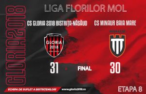 CS Gloria 2018 Bistrița-Năsăud a câștigat împotriva echipei CS Minaur Baia Mare cu scorul 31-30. Au marcat: