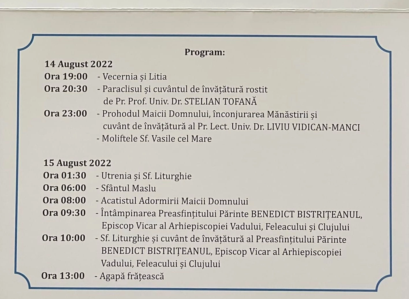Hramul Mănăstirii Dobric, cu participarea PS Benedict Bistrițeanul. Programul evenimentelor