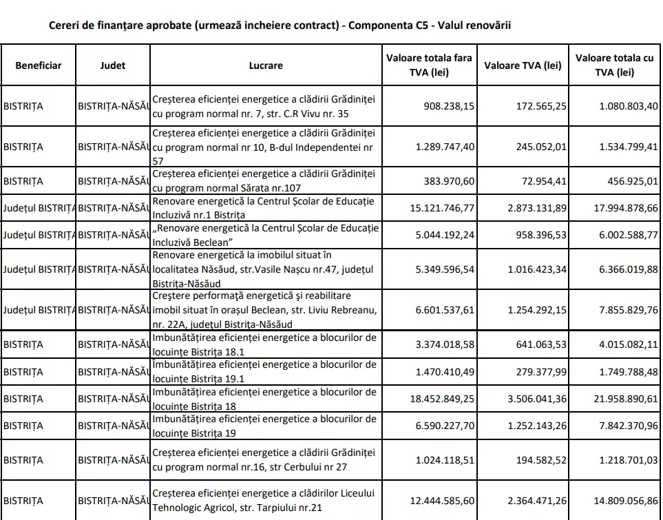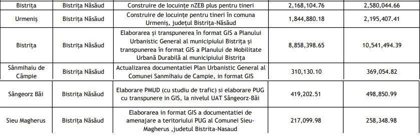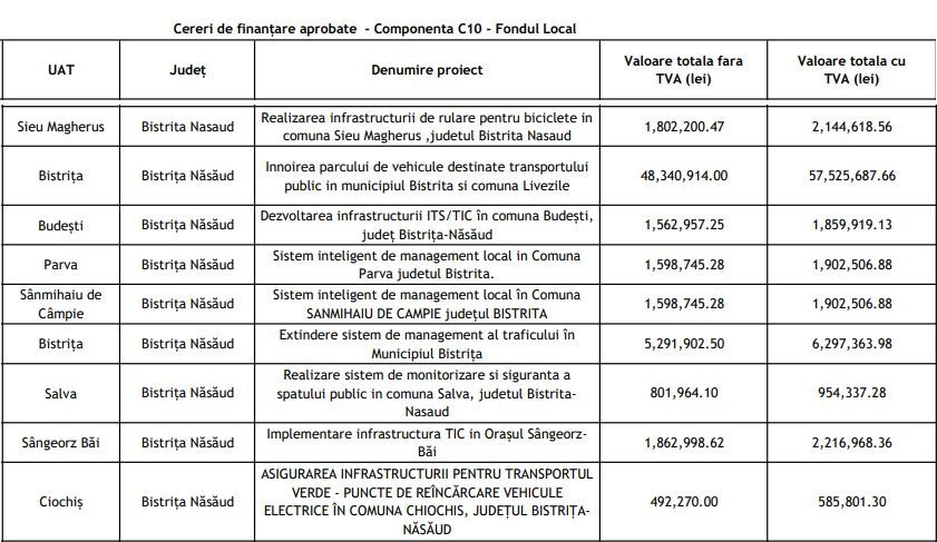 Pe lista acestor investiții figurează și 28 de proiecte depuse de unitățile administrativ-teritoriale din județul Bistrița-Năsăud.