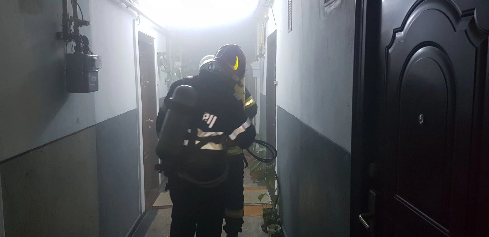 Pompierii au găsit casa scarii și locuință inundata cum fum. Incendiul a fost provocat de o cratiță lăsată nesupravegheata pe aragaz. Nu au fost înregistrate alte pagube materiale.