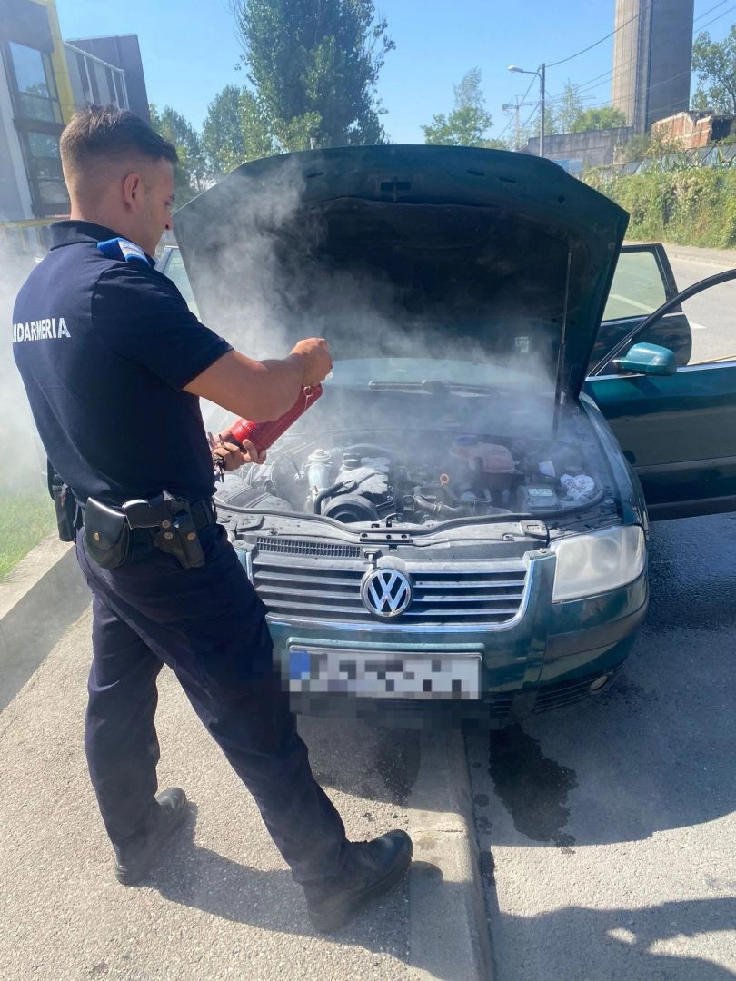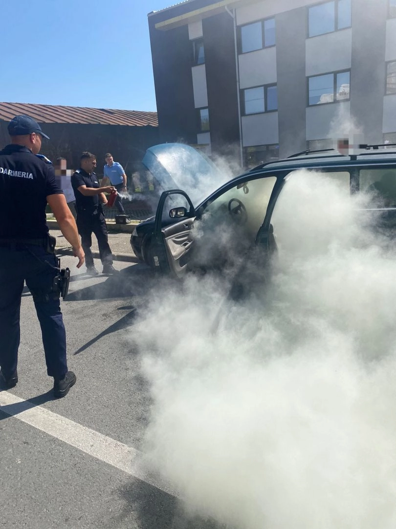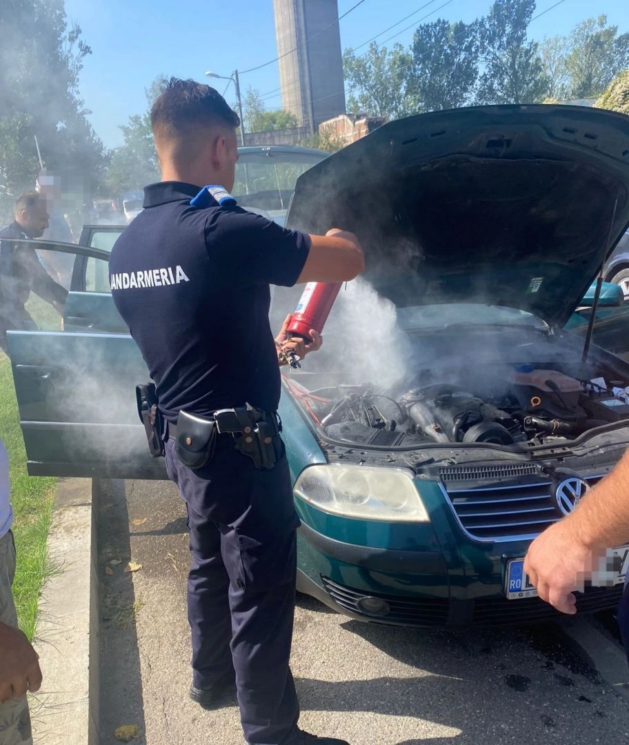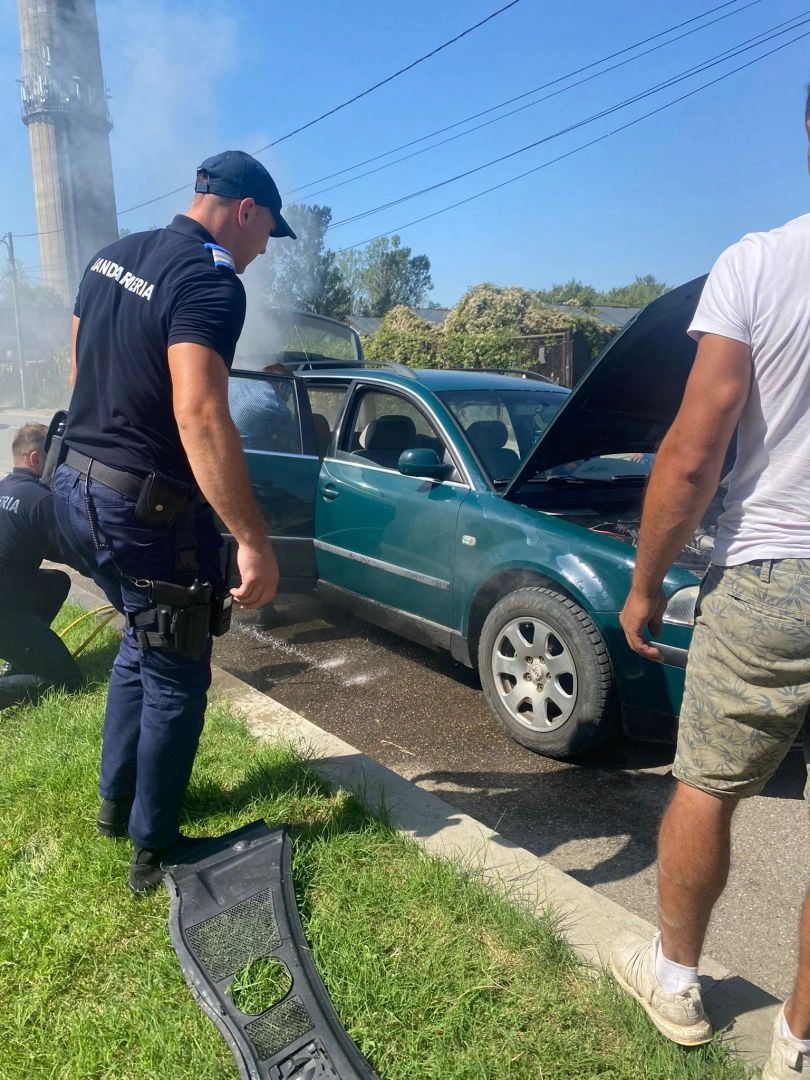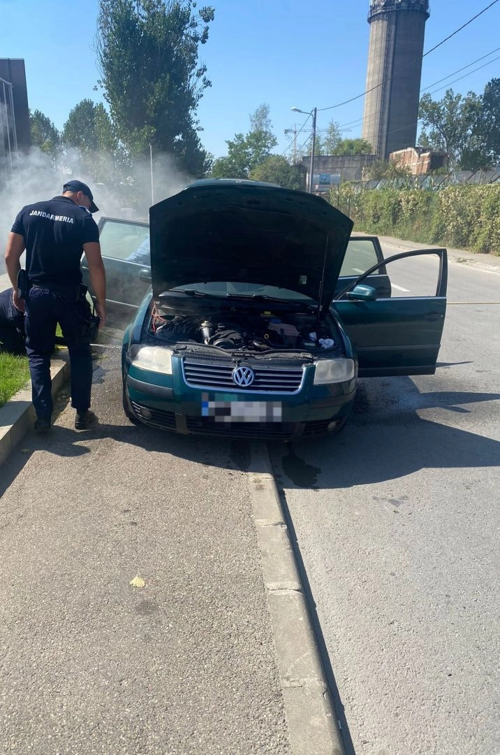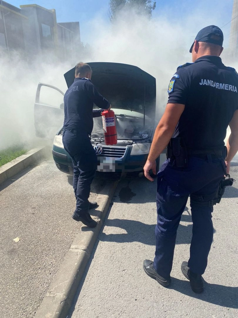 Incendiu izbucnit la un autoturism în apropierea unei conducte de gaze - stins de către jandarmii bistrițeni!