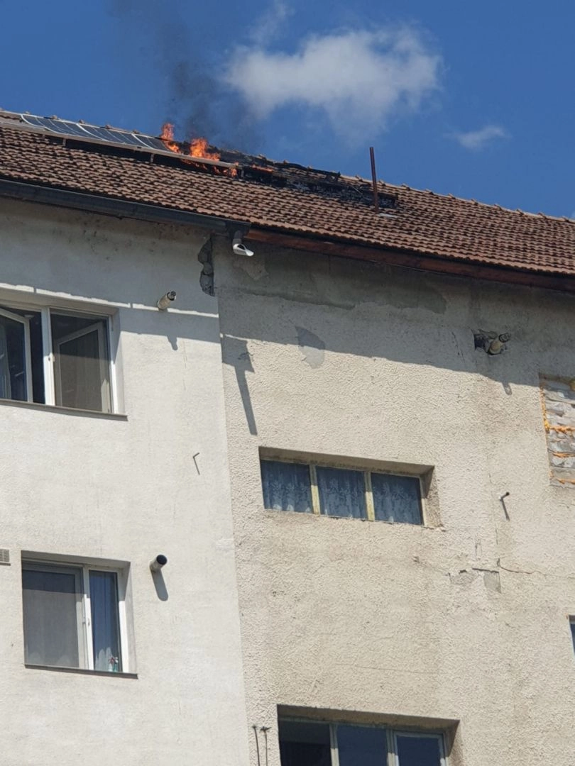Incendiu la acoperișul unui bloc din Bistrița (FOTO)