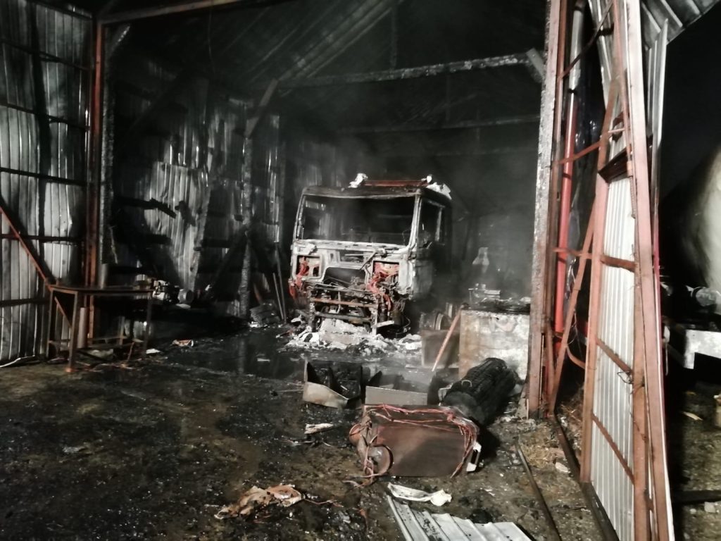 Incendiu la un service auto, în Coșbuc. O hală cu utilaje, mistuită de flăcări (FOTO-VIDEO)