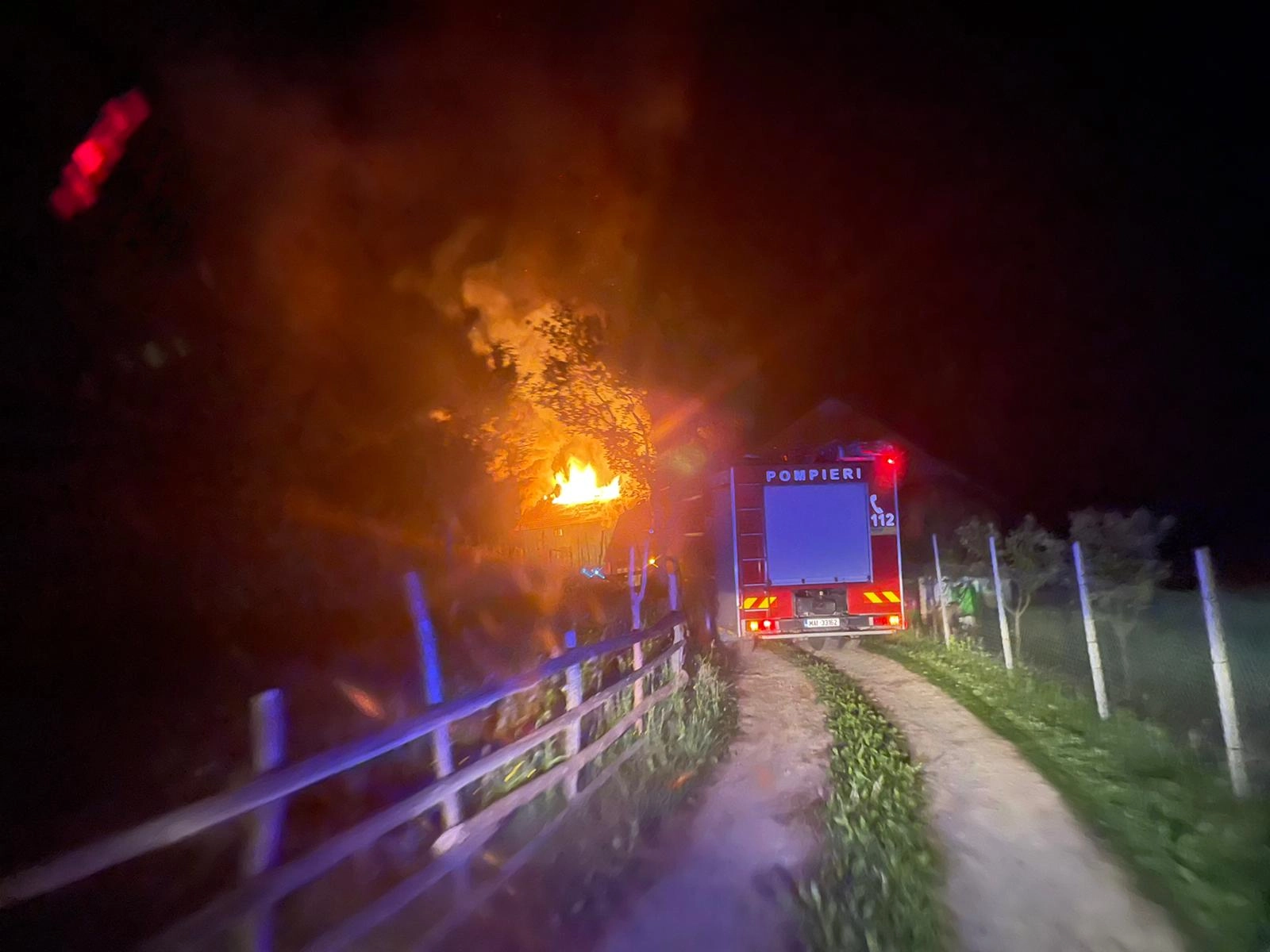 Un incendiu puternic a izbucnit azi-noapte în Lunca Leșului, comuna Leșu.