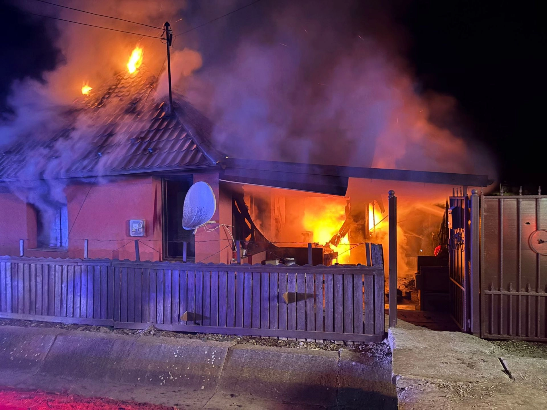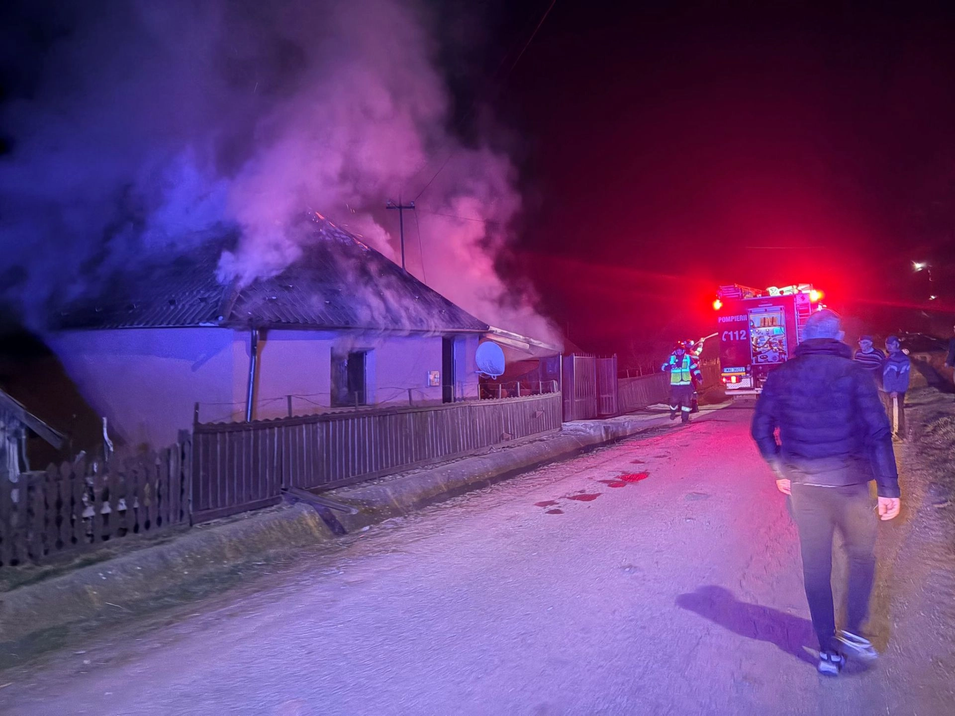 Incendiu puternic la o casă de locuit. Un bărbat a scăpat de flăcări (FOTO-VIDEO)