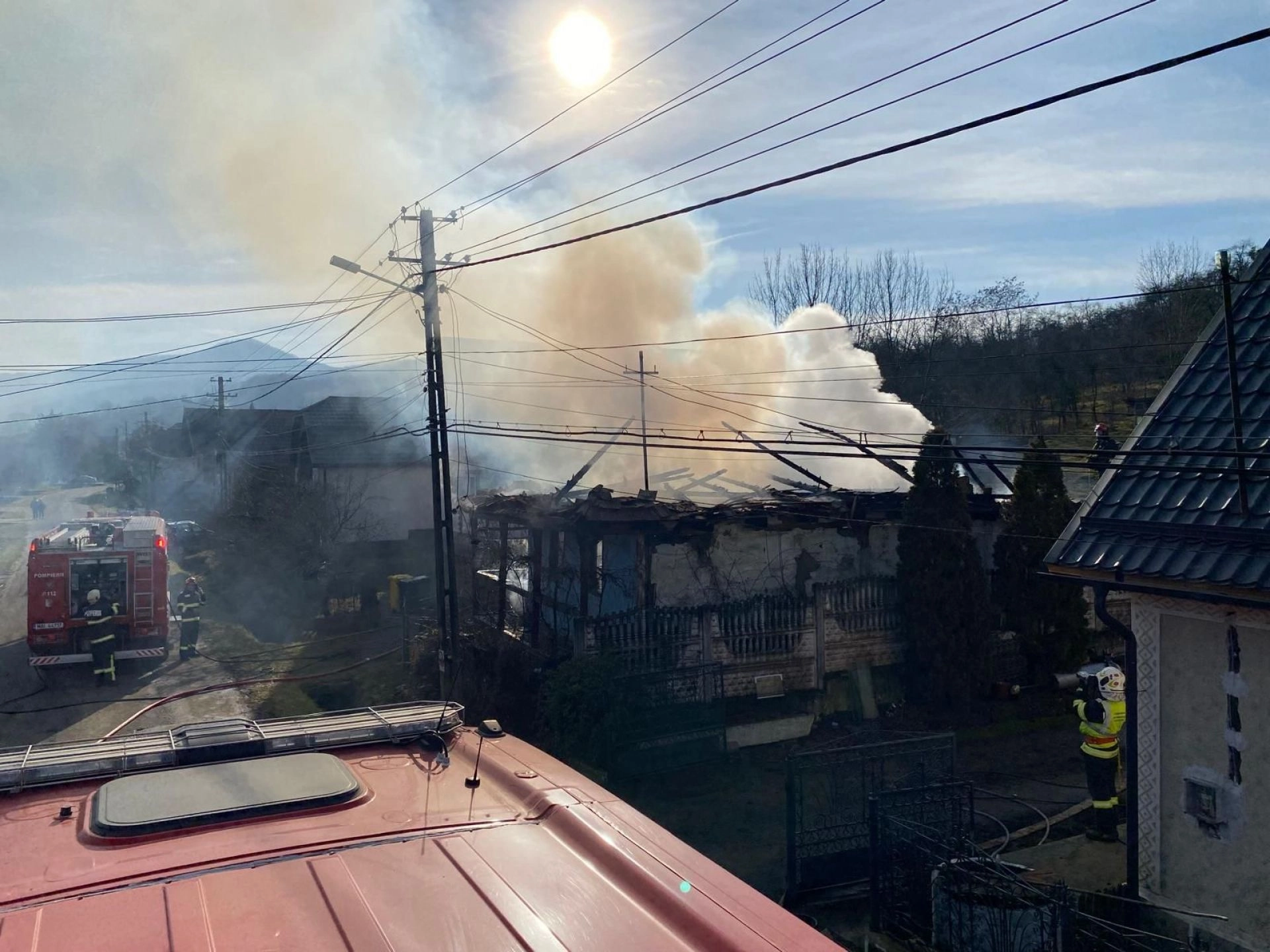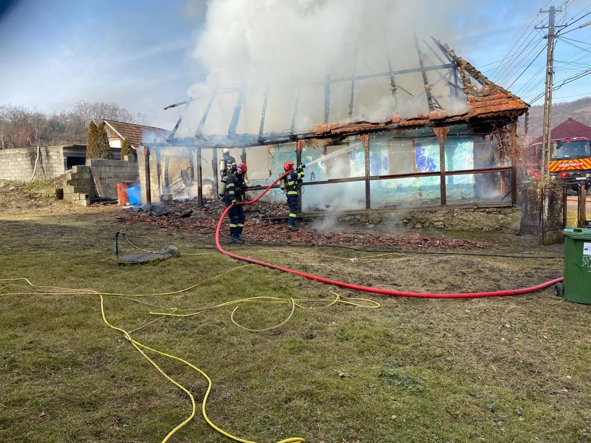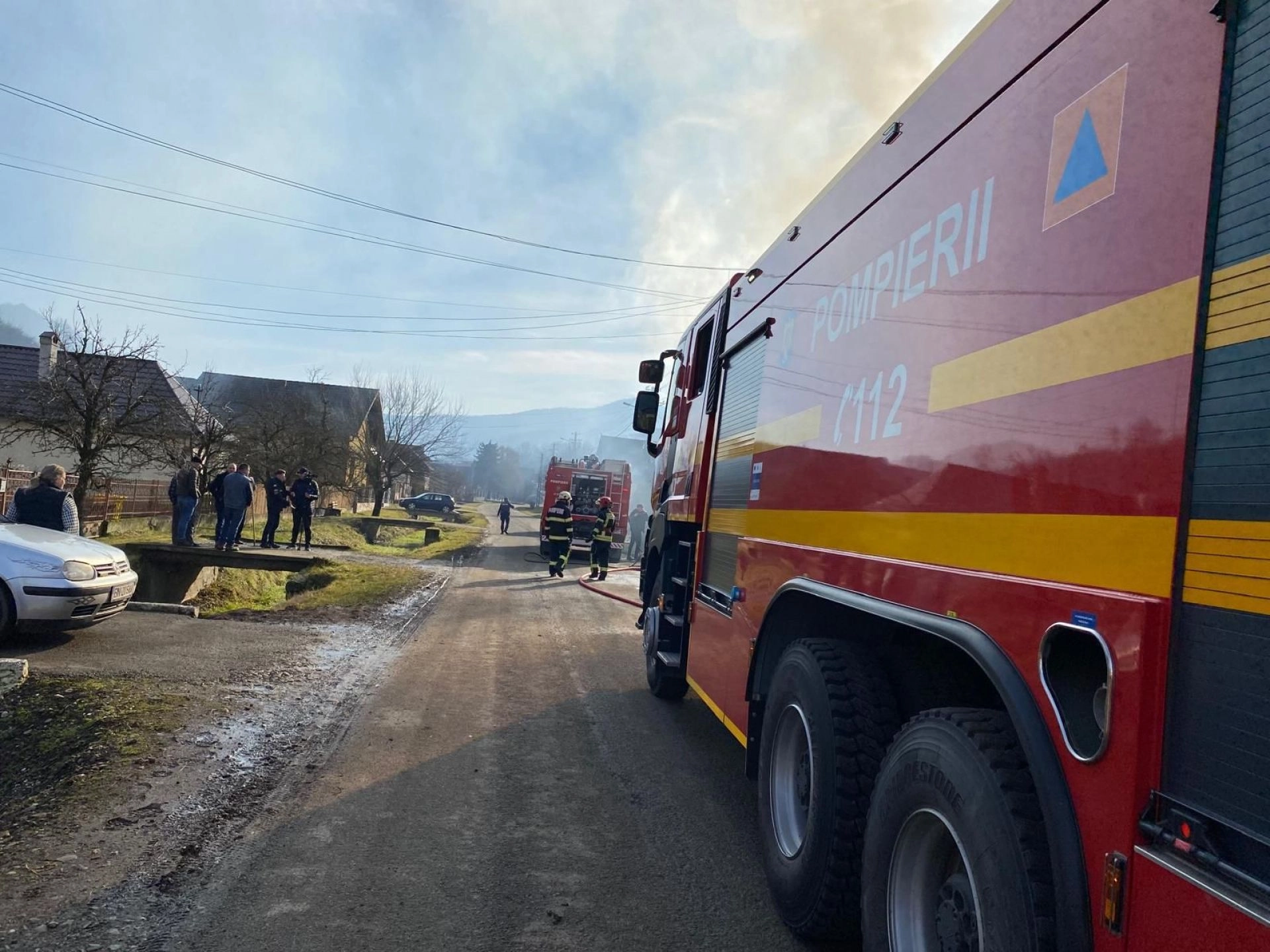 Incendiu violent la o casă din Caila, stins de pompierii bistrițeni
