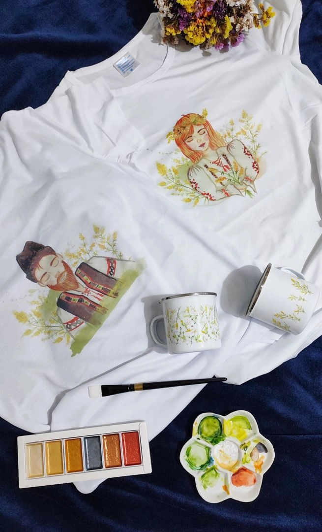 Eu lucrez cu tehnica de sublimare, care se face cu o cerneală specială care pătrunde în țesătură, asta mi se potrivește mie și stilului meu, pentru textile, dar și pentru ulcicile ilustrate pe care le fac de care am spus mai devreme. Până la sfârșitul anului trecut le făceam în colaborări, acum le fac eu de la început până la sfârșit, îmi organizez producția, atât cea de creație cât și cea de realizare tehnică a produselor, ca să spun așa. Practic e un fel de one-man show, postasem pe Instagram un filmuleț drăguț în care arat cum arată echipa unei persoane care are afacere proprie: practic eu sunt managerul, designerul, fotograful care face pozele produselor și așa mai departe. Dar persoanele care mă susțin fac mult în toată povestea asta.