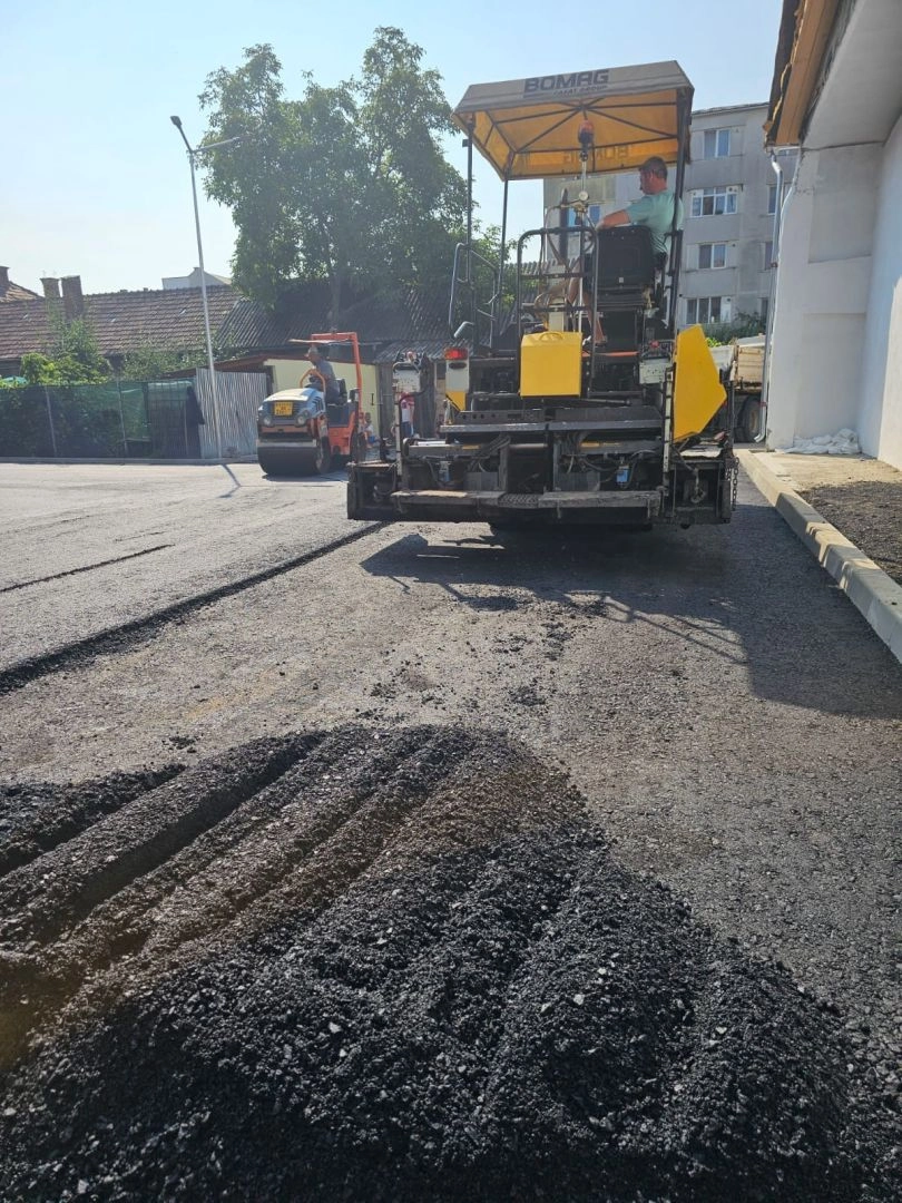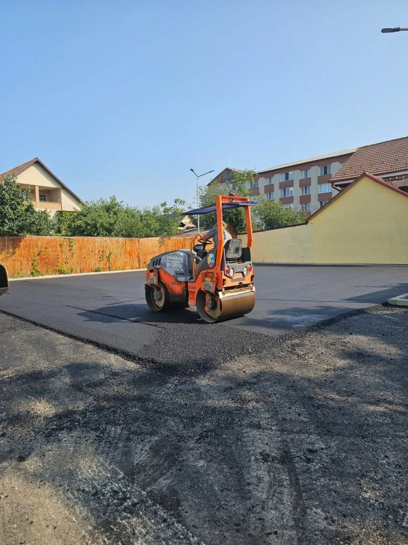 S-a așternut primul strat de mixtură asfaltică pe amplasamentul fostului punct termic nr. 18 de pe strada Dumbravei, după pregătirea terenului cu piatră concasată, a anunțat primarul Bistriței, Ioan Turc.